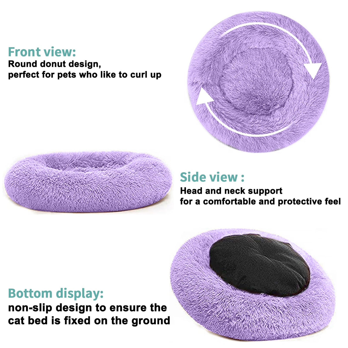 Cat beds or dog beds are donut design The raised edges create comfortable sense of security while providing head and neck support to help kitten or puppy calm down faster Get a more comfortable and stable sleep