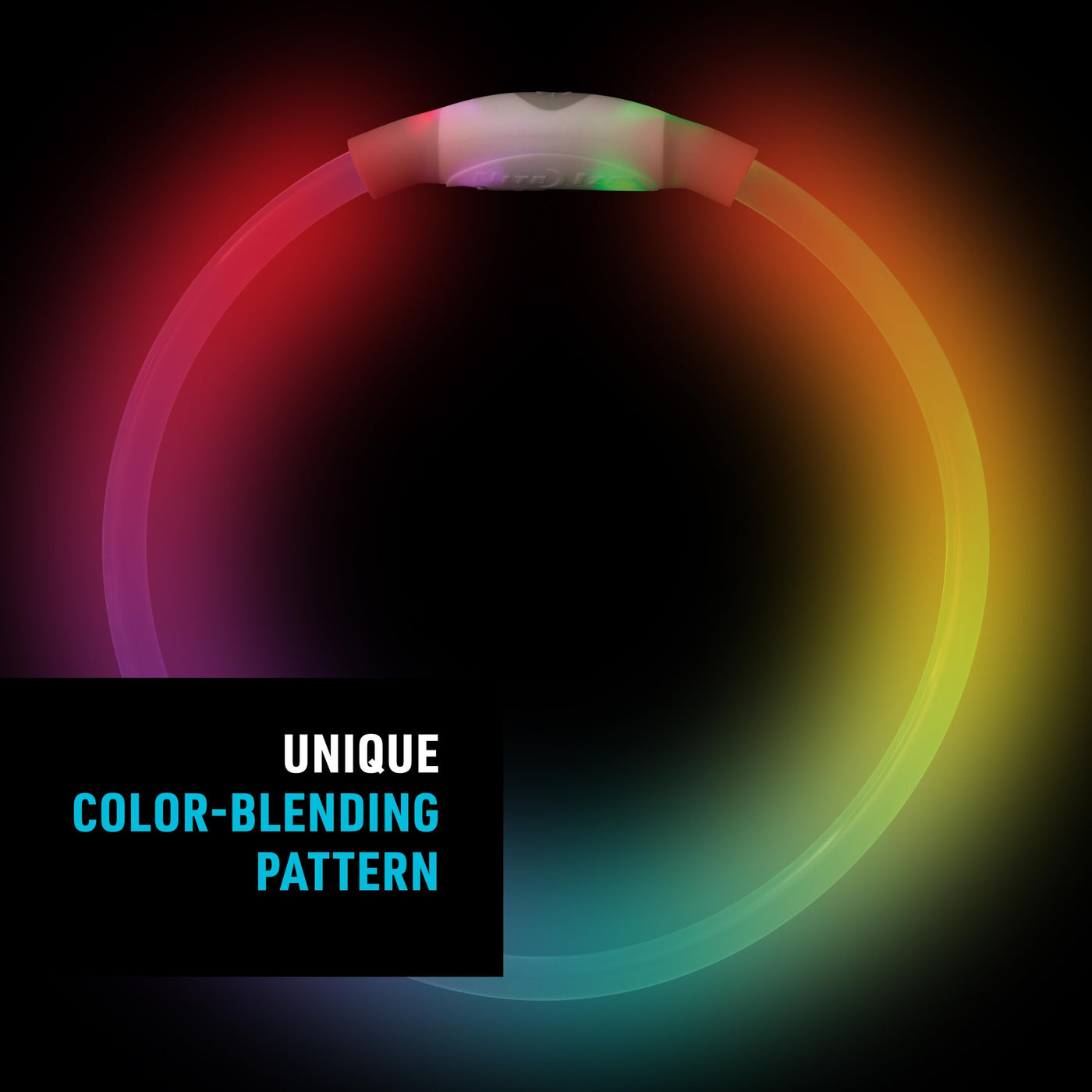Rechargeable & Adjustable Dog Accessories: This color blending necklace can be cut to fit dog's necks from 12' to 27'; use the micro USB cable to recharge after 5.5 hours of play time | Dog Necessities for Safety: This bright LED dog necklace illuminates a full 360 Degree around your dog's neck, so your pet will be visible during night activities | Weather-Resistant LED Necklace: This weather-resistant, light-up dog safety necklace can be used over and over again; keep your dog safe when walking in the rain | High Visibility for Dog Walking: Use the push button to turn on and off; use the glow and flash modes and colors to keep your dog safe when walking or running at night | About Nite Ize: Our inventor-driven products organize your life, protect your gear, light your way, and creatively solve everyday problems; every product is backed by our Worry Free Guarantee