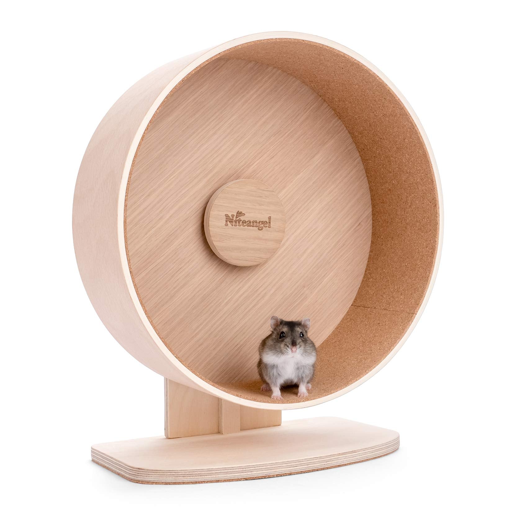 Why Choose Niteangel Wooden Silent Hamster Exercise Wheel? Silent, Reasonable Size , Sturdy, And Pet-Safe 1. We Designed 3 Sizes With Different Diameters To Provide A Back-Friendly Running Experience To The Hamsters Of Various Species And Sizes, Please Choose The Right One For Your Pets, Which Fits For Her When Exercise Without Bending Her Backs A. Small Size(S) - 8.6-Inch Diameter Drum Wheel W/ 2.6-Inch Track Wide Is Recommended For Dwarf Hamsters, Small Gerbil, Mice, And Other Similar-Sized Pets B. Medium Size(M) - 10.2-Inch Diameter Drum Wheel W/ 3.3-Inch Track Wide Is Recommended For Large Dwarf Hamsters, Normal Size Syrian Hamsters, Gerbil, Mice, And Other Similar-Sized Pets C. Large Size(L) - 11.6-Inch Diameter Drum Wheel W/ 3.7-Inch Track Wide Is Recommended For Syrian Hamsters, Gerbil, And Other Similar-Sized Pets 2. Silent Spin Hamster Exercise Wheel - We Designed To Use Dual Ball Bearing To Keep It On Spinning Smoothly With A Very Low Noise Level (Around 40Db), Brings A Quiet Night For You When Your Hamster Working Out On The Hamster Exercise Wheel 3. Pet-Safe Material & Sturdy & Gnawing-Resistant - The Cork Running Track Is Continuous To Prevent Cracks Or Tripping. The Soft Surface Of The Cork Track Provides A Paw-Friendly Experience When Running. Made From Oak & Poplar Wood, Which Are Durable And Gnawing-Resistant As Well 4. Adjustable Height Offers The Convenience To You Upon The Desire Of A Designed Cage Theme. Please Keep In Mind The Dimension Of This Hamster Exercise Wheel, If Your Cage Or Tank Is Small Or Not Tall Enough, It'S Not A Perfect Choice Due To The Big Size 5. The Non-Tipping Stand Gives This Wheel A Firm Stand, It Comes With A Cork Mat Under The Base To Prevent Moving When The Hamster Running
