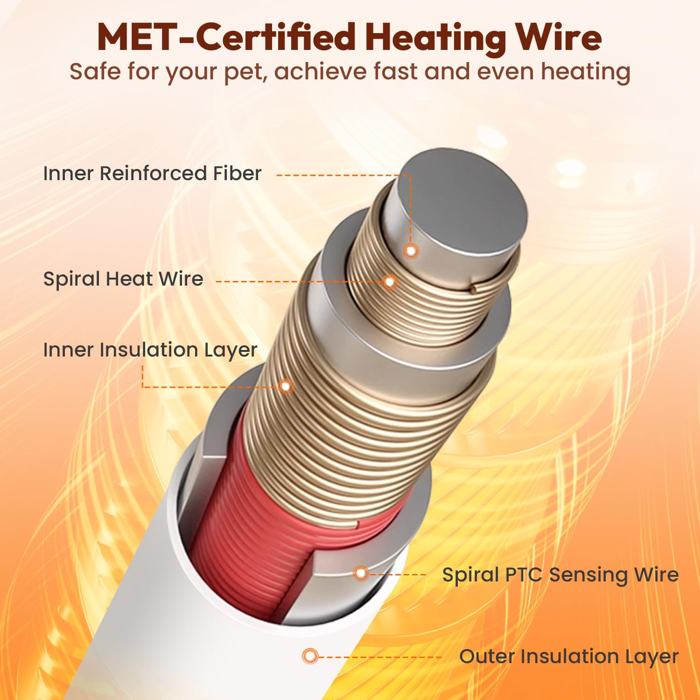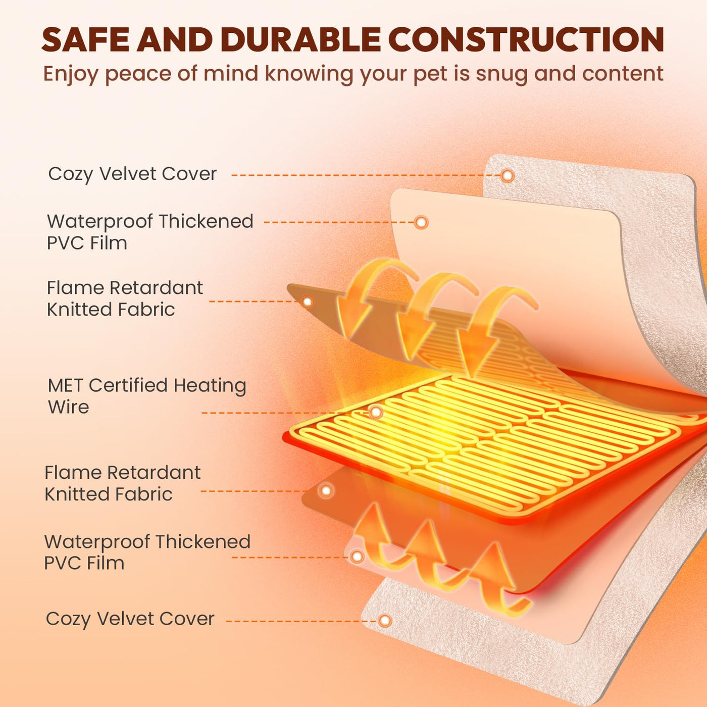 Niubya Pet Heating Pad For Dogs, Adjustable Temperature And Waterproof Electric Heated Mat With Timer, Chew Resistant Cord And S