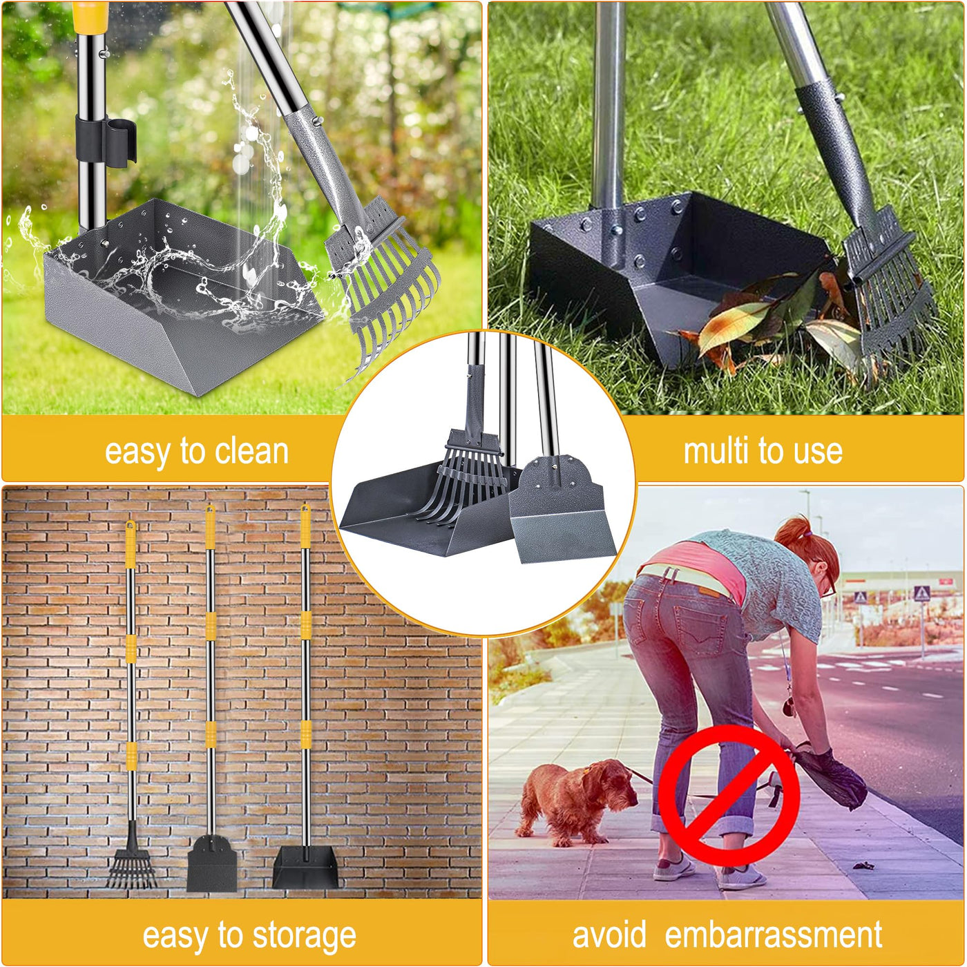 Cleaning Up Poop Is An Inevitable Part Of Dog Ownership. Whether In Your Own Yard Or On A Walk, You Know That If You Own A Dog, Youll Be Stooping And Scooping At Regular Intervals. If Youre Not Keen On The Idea Of Using A Plastic Bag And Your Hand To Pick Up After Your Pet, A Dog Pooper Scooper Can Be An Excellent Tool To Use.Niubya Poop Scooper Provides A Convenient And Comfortable Way To Clean Up After Dogs. The Dog Poop Scooper Is Equipped With An Adjustable Handle That Extends Up To 37.8 Inches In Length For A Comfortable Height For Pet Parents. The Tray And Rake Are Made Of A Durable, Heavy-Duty Antirust Metal That Stays Stronger For Longer. The Metal Material Of The Pet Pooper Scooper Is Easy To Wipe Down Or Hose Off For Simple Cleaning. The Handles Have Built-In Hook Holes For Easy And Convenient Storage. Package Includemetal Tray X 1Metal Spade X 1Metal Rake X 1Plastic Link X 2Stainless Steel Tubes X 9