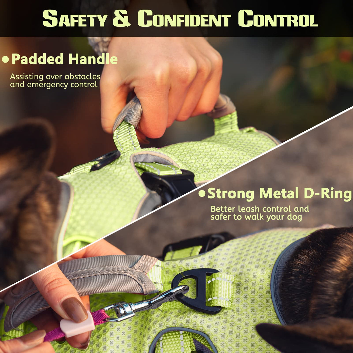 No Escape Dog Harness, Escape Proof Harness, Fully Reflective Harness With Padded Handle, Breathable,Durable, Adjustable Vest For Medium Dogs Walking, Training, And Running Gear Green (Medium)