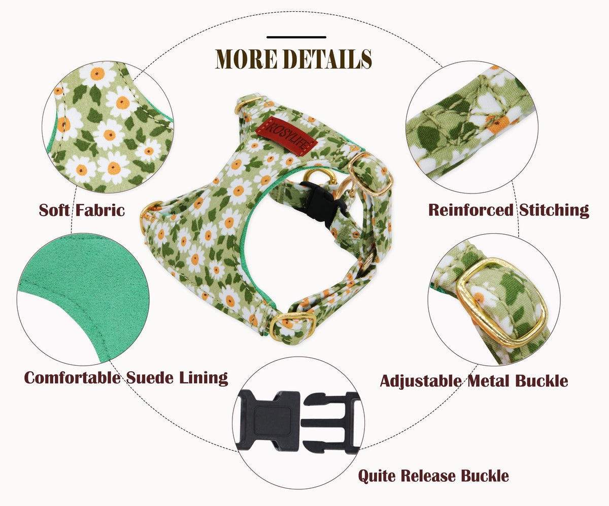 The Ultra Light, Soft, And Easy To Wear No Pull Dog Harness Allows You To Leisurely Walk And Play With Your Dog! Product Name: Dog Harness. Product Material: Aluminum, Faux Suede, Polyester Blend, Cotton. Product Size: S. Applicable Weight: 8.8Lb-16.5Lb Scope Of Application: Schnauzer(Mini),Poodle,Shih Tzu,Bichon Frise,Doberman(Mini).Cavalier King Charles Spaniel,Dachshund(Mini), Etc. Package Includes: 1*Dog Harness, 1*Dog Leash. Feature: 1. The Puppy Harness Is Soft In Texture, Comfortable And Breathable, And Ultra-Light Material,Wear No Pressure,No Bound, Which Will Not Add Weight To The Dog. 2. Straightforward Step-In Design Takes The Hassle Out Of Prepping For Walks. Designed With Premium Materials And Strong Stitching For Maximum Durability. 3. The Fashionable Printing Is Rich In Layers And Does Not Easy To Faded, Unique And Cute Design Showcases The Personality Of The Puppy.