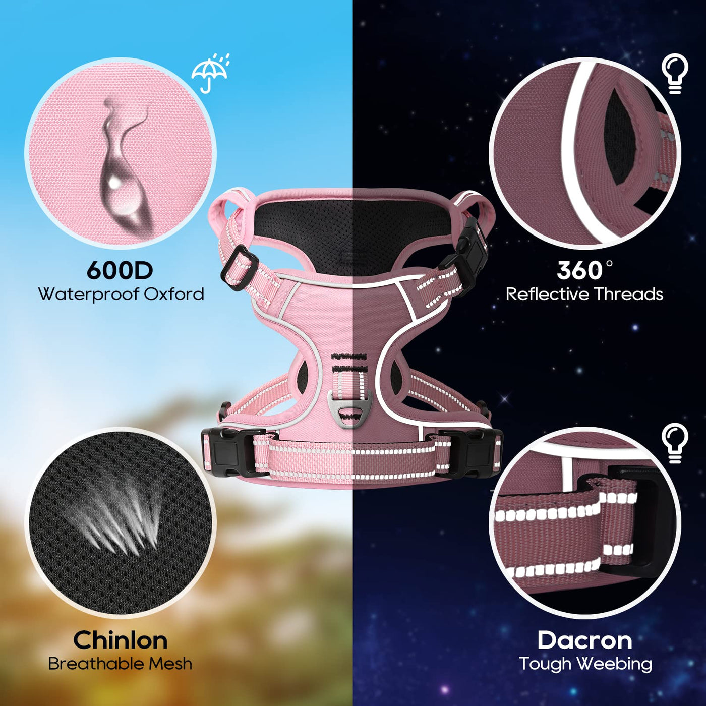 No Pull Dog Harness, No Choke Front Lead Dog Reflective Harness, Adjustable Soft Padded Pet Vest With Easy Control Handle For Sm