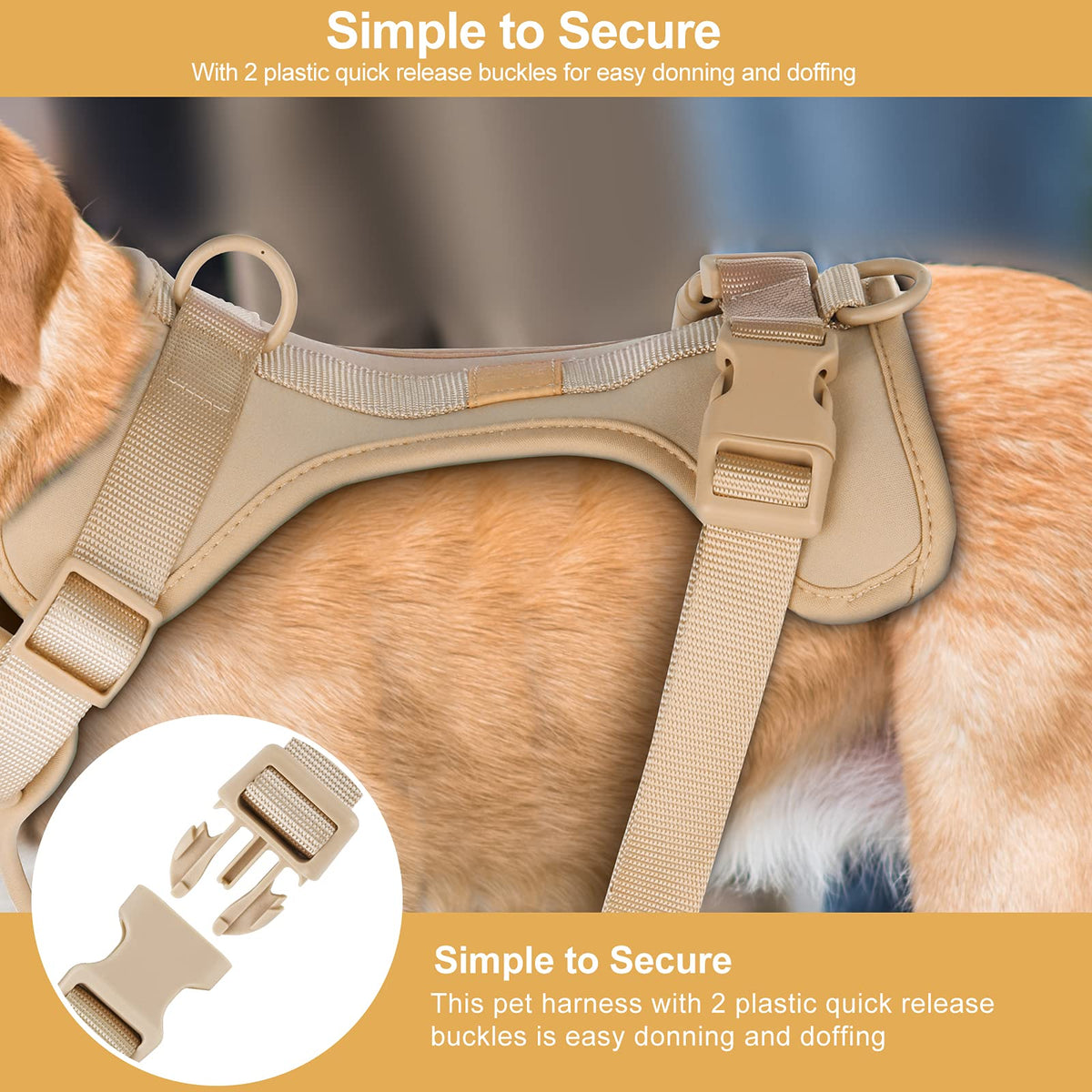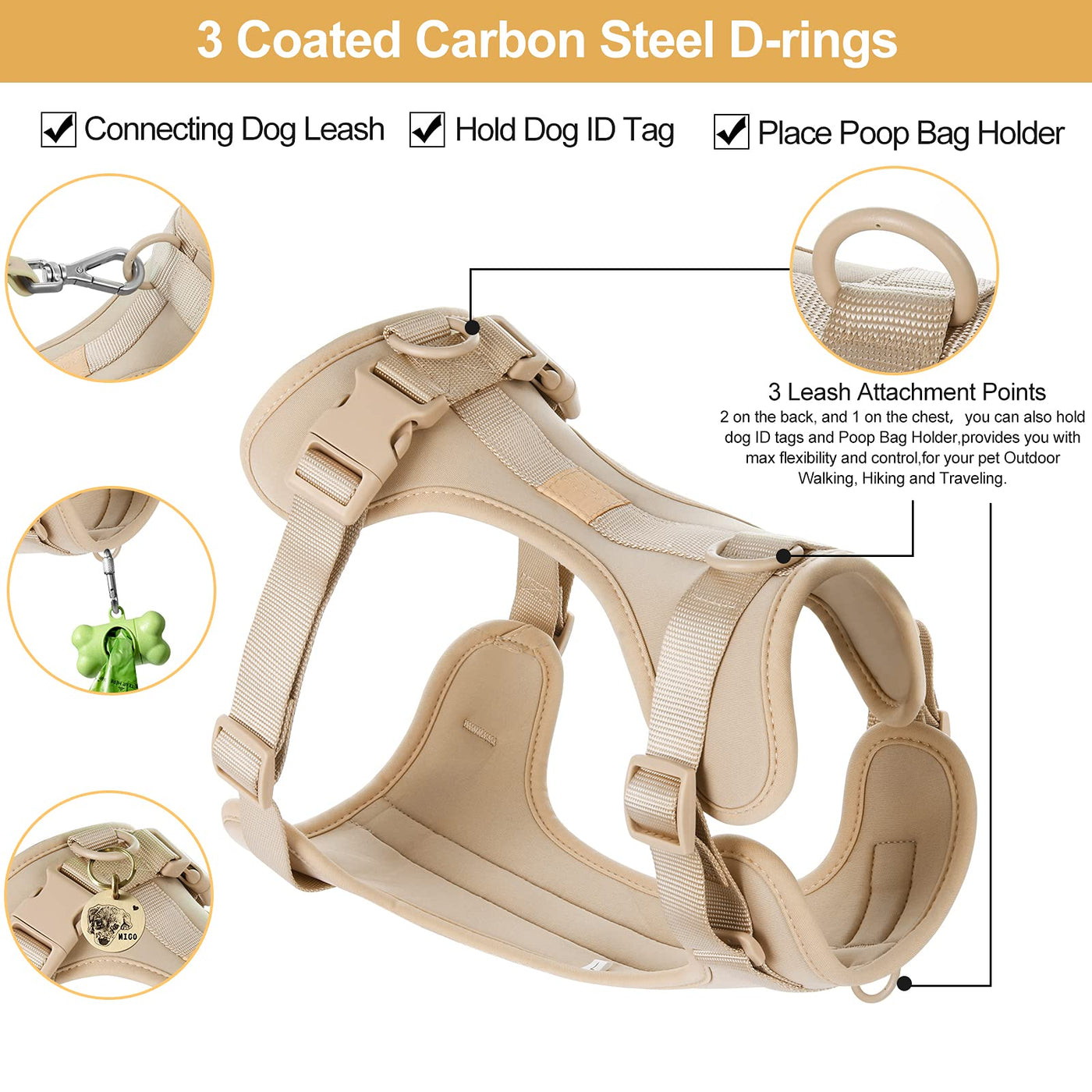 No Pull Lightweight Dog Harness: Adjustable Durable Breathable Mesh Pet Vest Harness With Soft & Comfortable Cushion, For Small Medium Large Dogs (Xs, Sand Color)