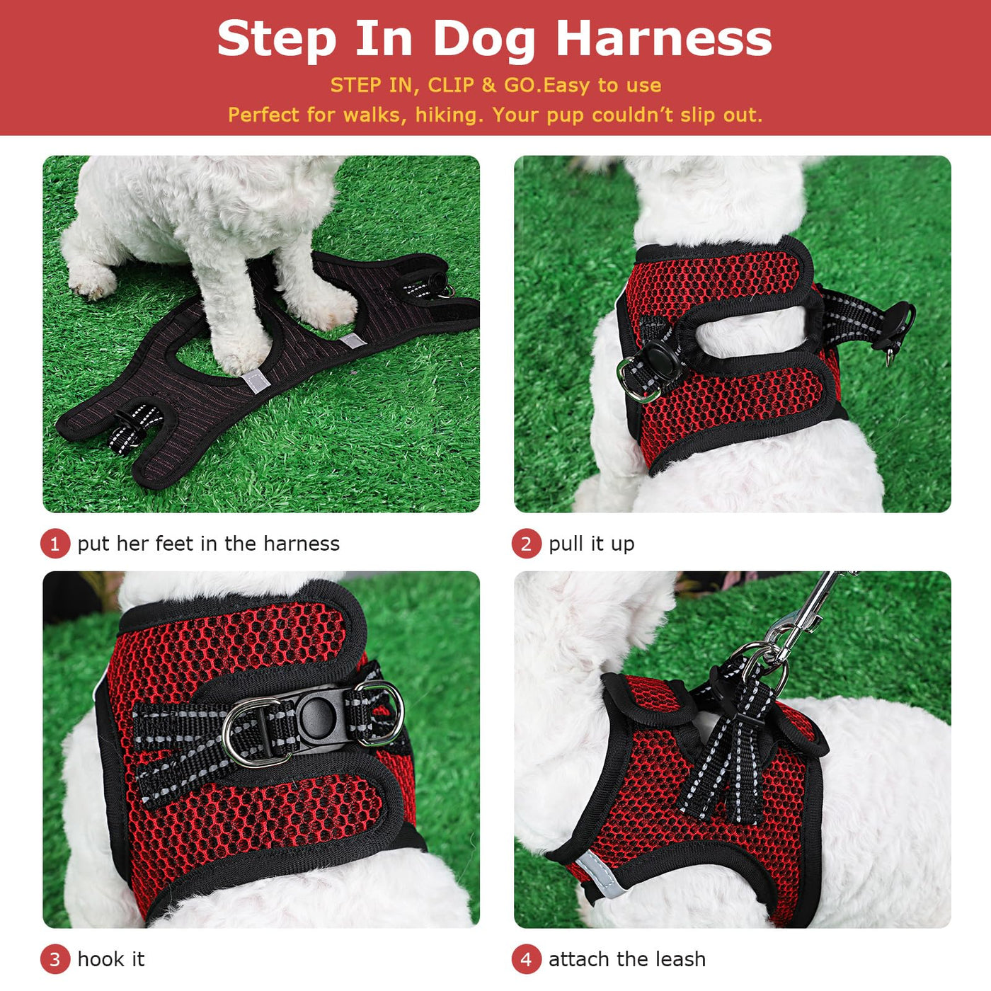 Furrymong - A Brand That Stays With Your Dog For Life. Step-In Air Dog Harness, All Weather Mesh Step In Vest Harness For Small And Medium Dogs Harness No Pull Xs Dog Harness, Soft Adjustable No Choke Escape Proof Pet Harness Vest 1. Air Mesh Dog Harness- Made From A Soft And Breathable Mesh Fabric. Suitable For All Season Weather. 2. Step-In Design - Only 3 Steps To Put On Or Take Off The Vest Easily. This Harness Is Made With An Easy Step-In Style Which Is Perfect For Pets Who Hate Putting Harnesses On Over Their Heads. They Are So Easy To Slip On Yet Secure Enough The Pet Cant Get Out. 3. Three Safety Features - Three Security Features Of Strong Straps, Snap-In Buckle &Amp; Sturdy 2-D Rings. 4. Reflective Dog Harness - Reflective Bands Increase Visibility In Low Light For Added Safety. 5. No Pull No Choking - Not Strain Neck,The Pulling Pressure Is Evenly Distributed To Pet'S Body. 6. Machine Washable - Machine Wash, Please Hang To Dry. Recommend For Dog &Amp; Cat (Under 22Lbs)