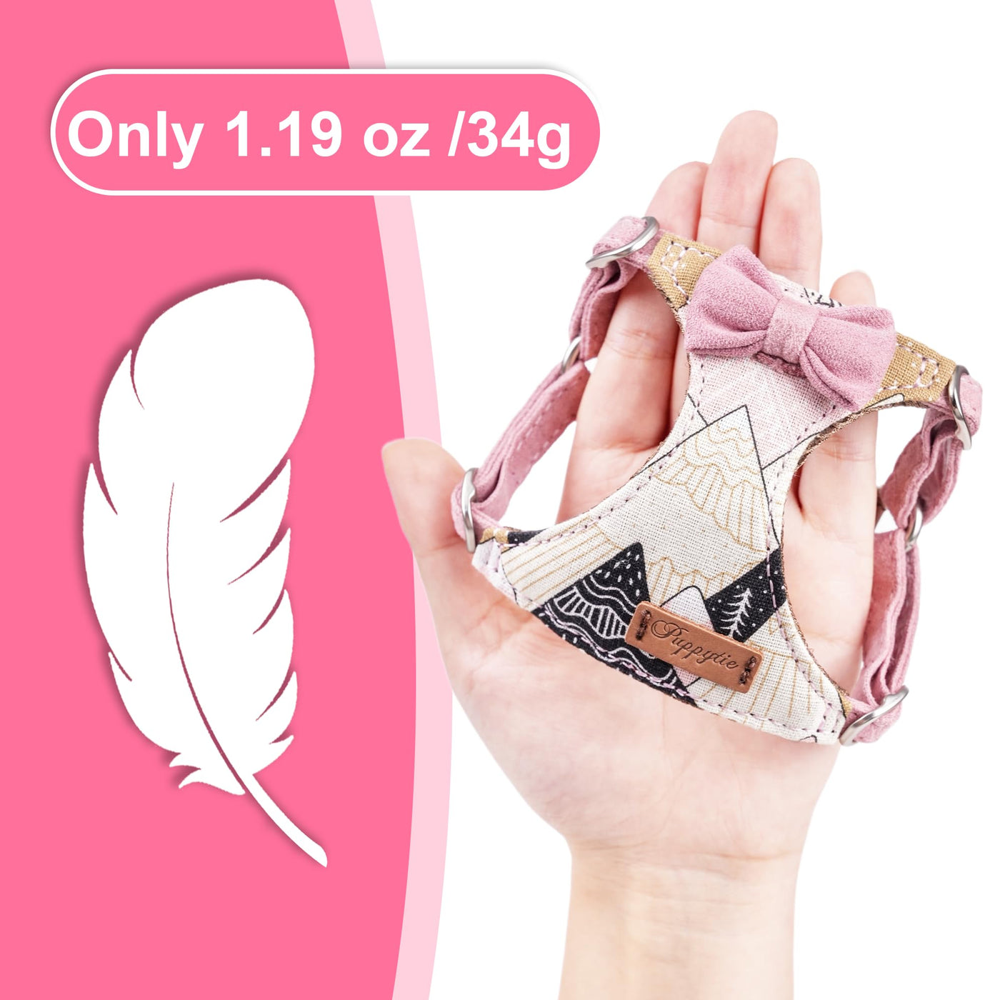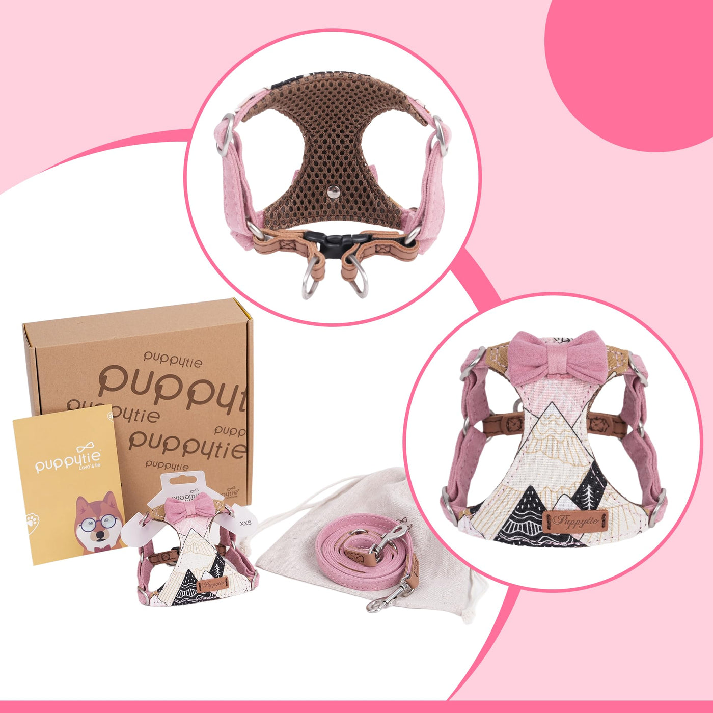No Pull Xs Dog Harness With Multifunction Dog Leash,Soft Adjustable No Choke Escape Proof Pet Harness Vest,Suede Bow Pink,Xxs