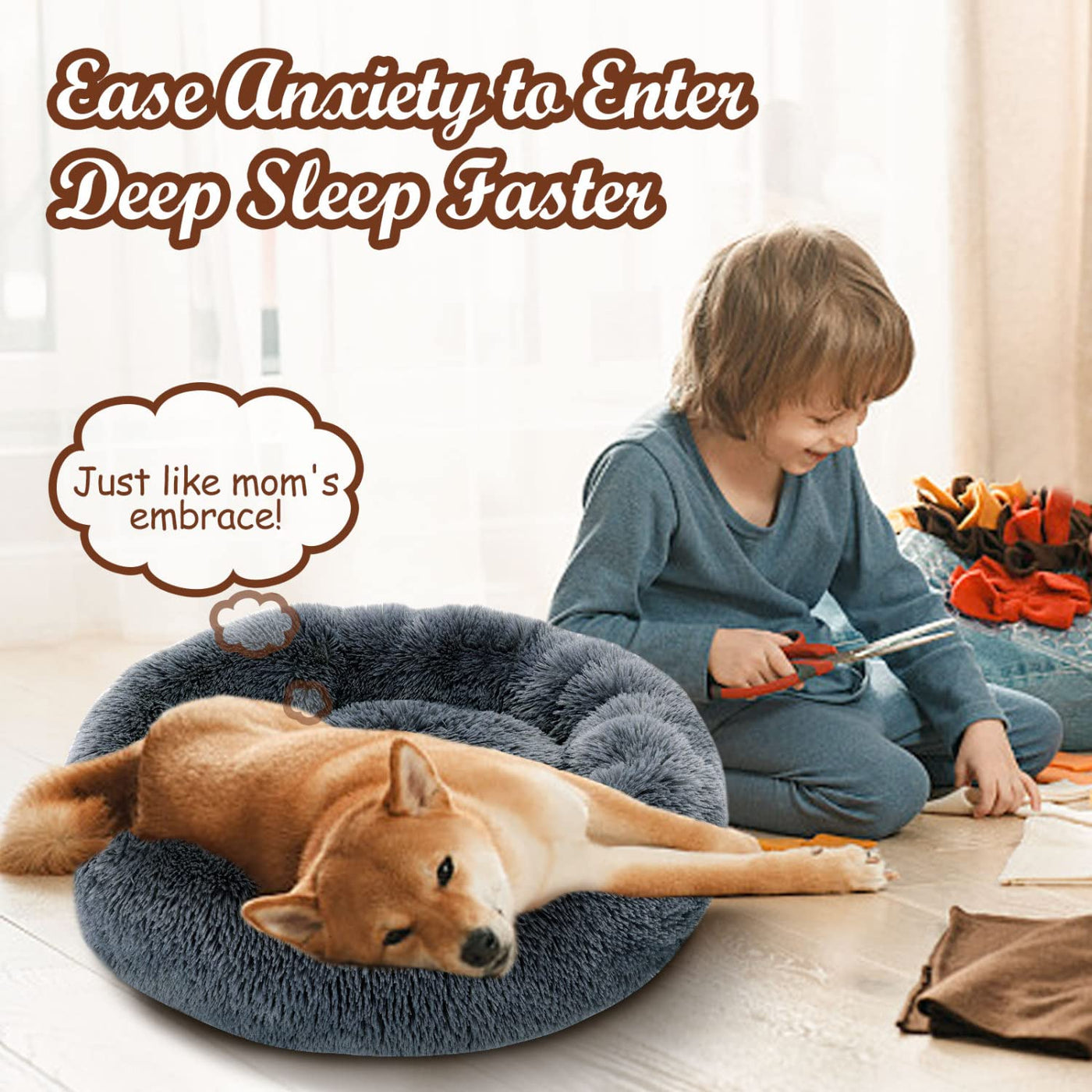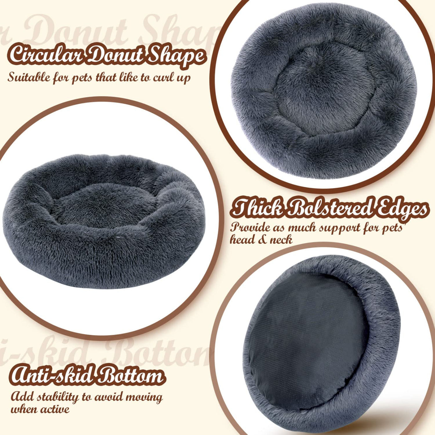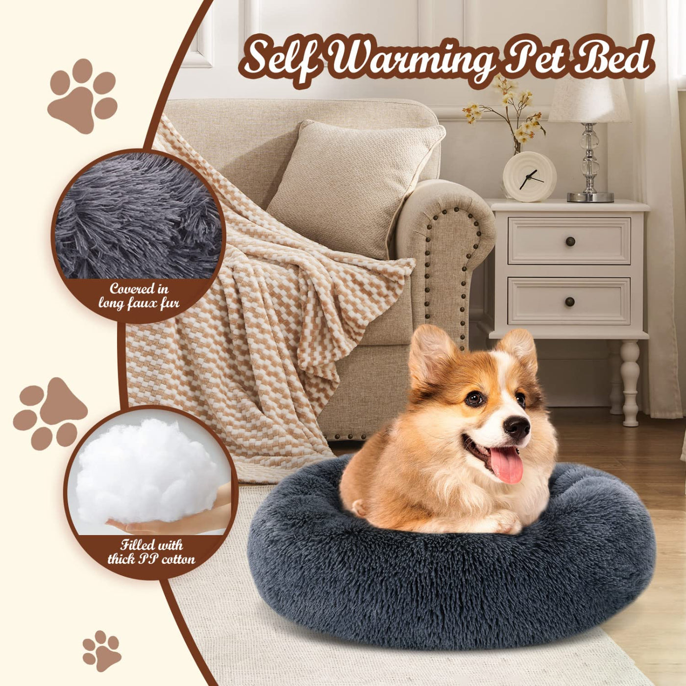 Nobleza Dog Bed For Small Dogs, Washable Soft Round Fluffy Donut Self-Warming Cat Calming Bed, Anti-Anxiety Cuddler For Indoor S
