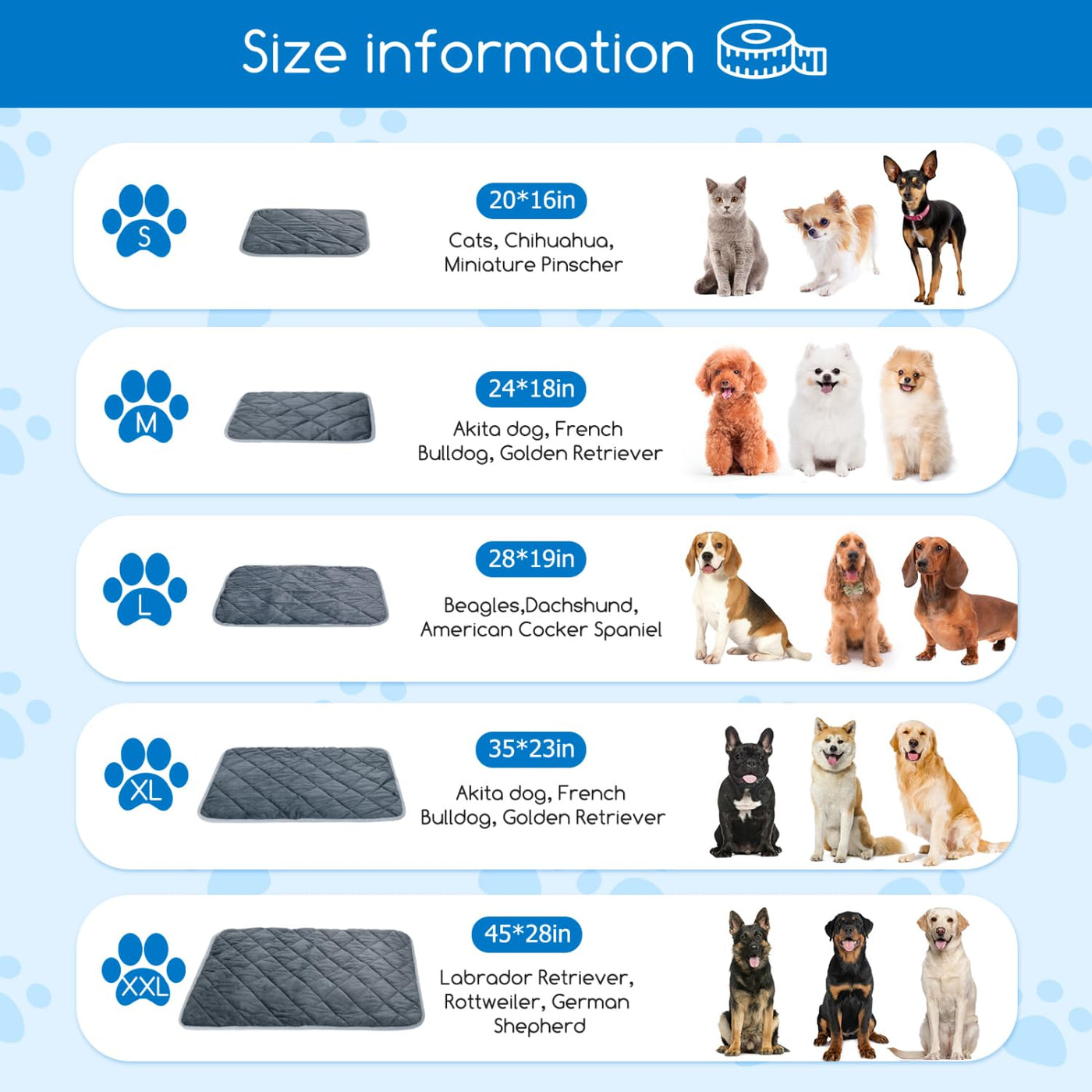 Q: Is the Nobleza pet pad suitable for all dog sizes?A: Yes, the Nobleza Self Warming Pet Pad is available in multiple sizes, including XS, S, M, L, and XL, making it suitable for small to medium dogs and even cats. It's important to measure your pet to ensure you select the right size for their comfort.