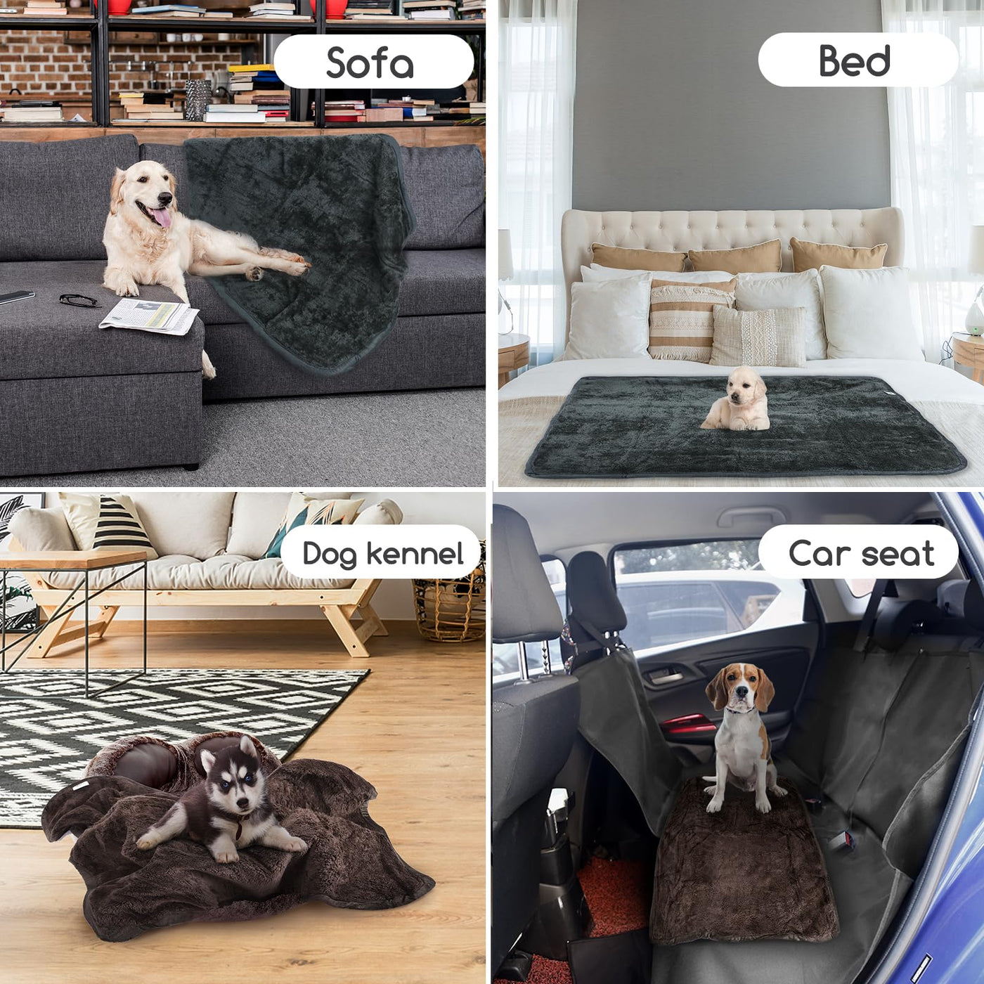 Nobleza Waterproof Dog Blanket Reversible Super Soft Warm Fluffy Sherpa Fleece Puppy Blanket, Pee Urine Proof Washable Pet Throw Blanket For Small Dogs & Cats, 24“ × 32“ Grey