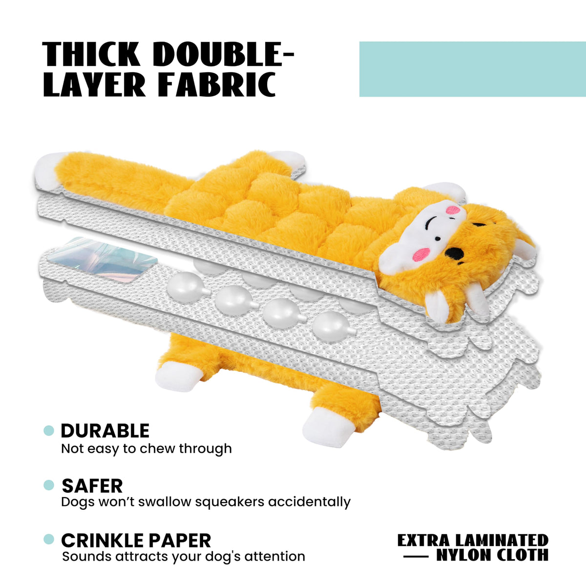 Nocciola Crinkle Dog Squeaky Toys - the ultimate stress-relief game for small, medium and large size dogs. This squeaky dog toy offer a symphony of squeaks and crinkles, turning playtime into an engaging sensory experience that not only keeps your furry friend entertained but also relieves boredom and anxiety. With a substantial 21 inch length, this no stuffing dog toy are perfect for interactive play, including tug-of-war sessions that can test even the strongest of playmates. Crafted with double reinforcement and strong stitching, they are built to endure enthusiastic chewing. Plus, the soft fabric contributes to your dog s dental health, effectively cleaning their teeth as they play. This no stuffing dog toys also make fantastic gifts, whether for a special occasion or just to show your pup some love. Get ready to buy a Christmas dog toy and bring your dogs hours of tail-wagging fun!