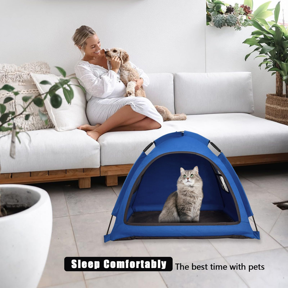 Nockovi Blue Cat Tent House?Cat'S Nest, Portable Indoor/Outdoor Pet Tent House For Cats, Puppies And Other Small Animals