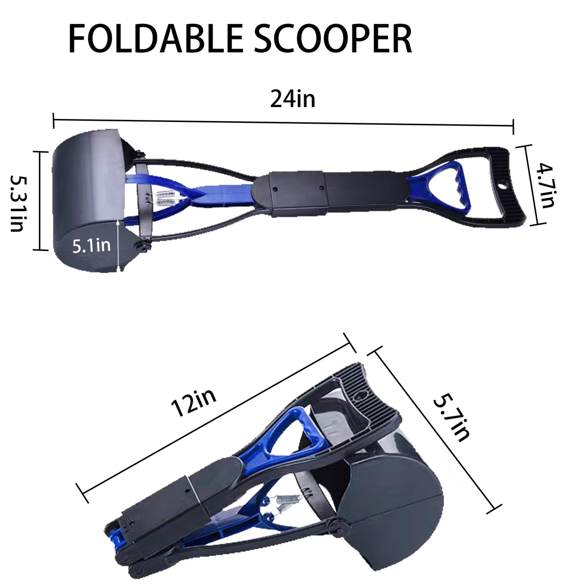 Non-Breakable 24 Inch Portable Dog And Cats Poop Scooper With Foldable Long Handle, 20 Pet Waste Bags & 1 Dispenser, Set For Yar