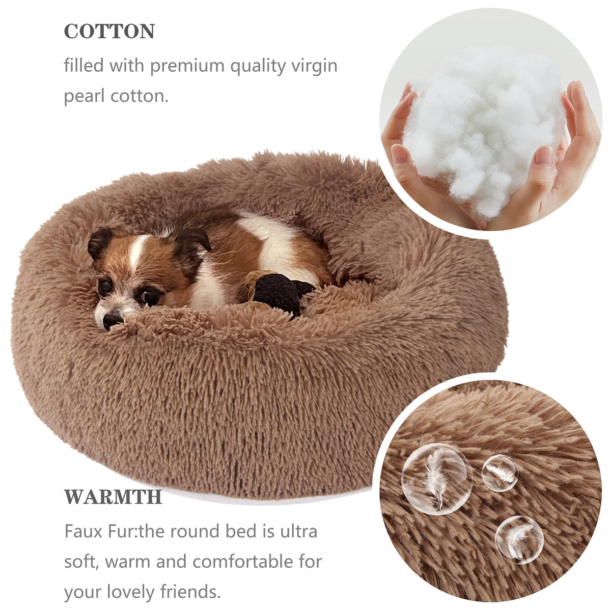 Nononfish Small Puppy Beds For Small Dogs Washable - 19 Inches Round Faux Fur Pet Bed For Puppy And Cat Donut Fluffy Plush Ortho