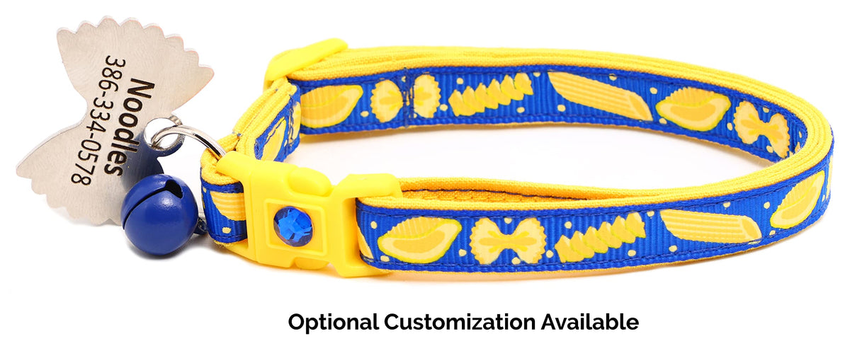 Noodle Cat Collar - Safety - Breakaway - Charm And Bell - Pugs2Persians (Large(10Lbs & Up), Blue)