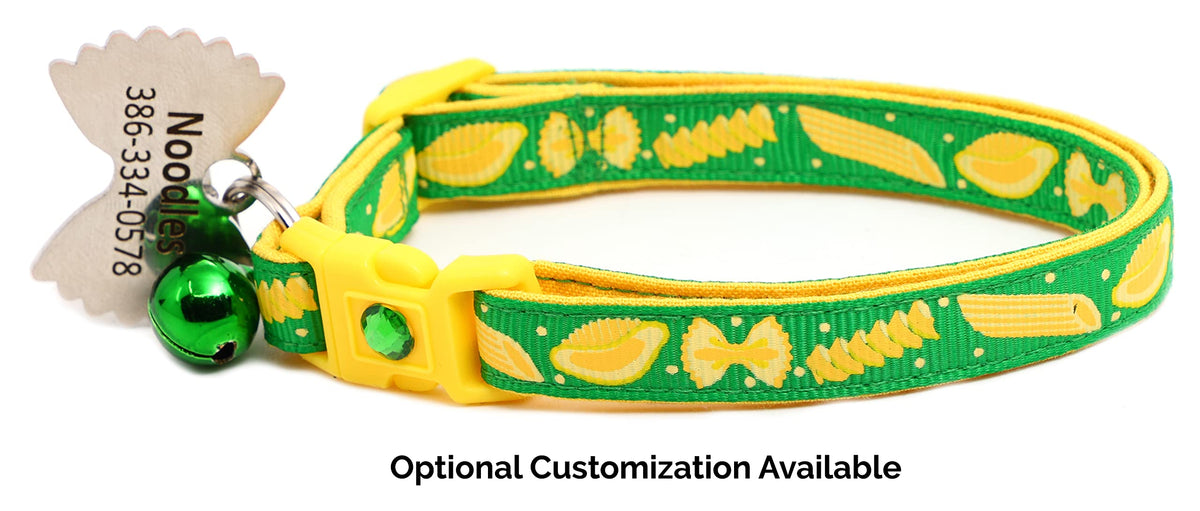 Noodle Cat Collar - Safety - Breakaway - Charm And Bell - Pugs2Persians (Large(10Lbs & Up), Green)