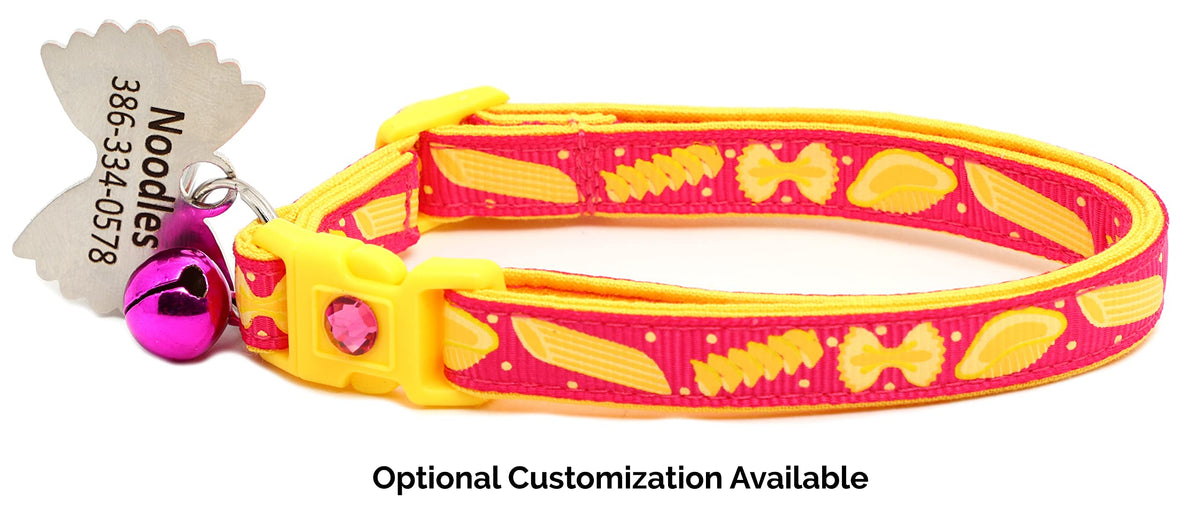 Noodle Cat Collar - Safety - Breakaway - Charm And Bell - Pugs2Persians (Large(10Lbs & Up), Pink)