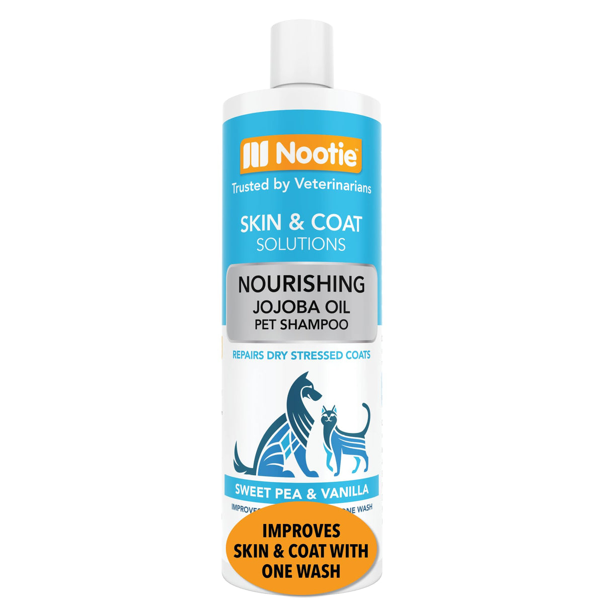 SWEET PEA & VANILLA DOg & cAT SHAMPOO NOURISHINg WITH JOJOBA OIL REPAIRS DRY STRESSED cOATS - Safe for pets over 8 weeks old IMPROVES SKIN & cOAT WITH ONE WASH LONg LASTINg FRAgRANcE - Use with Nootie Daily Spritz to maintain fragrance in between washes FORMULATED FOR VETERINARIANS - Nootie is sold in over 5 000 vet clinics and 4 000 pet stores worldwide Our formulator has over 40 years of experience NO PARABENS SLS OR HARSH cHEMIcALS - gently formulated SOAP FREE cRUELTY FREE & VEgAN FRIENDLY MADE IN THE USA