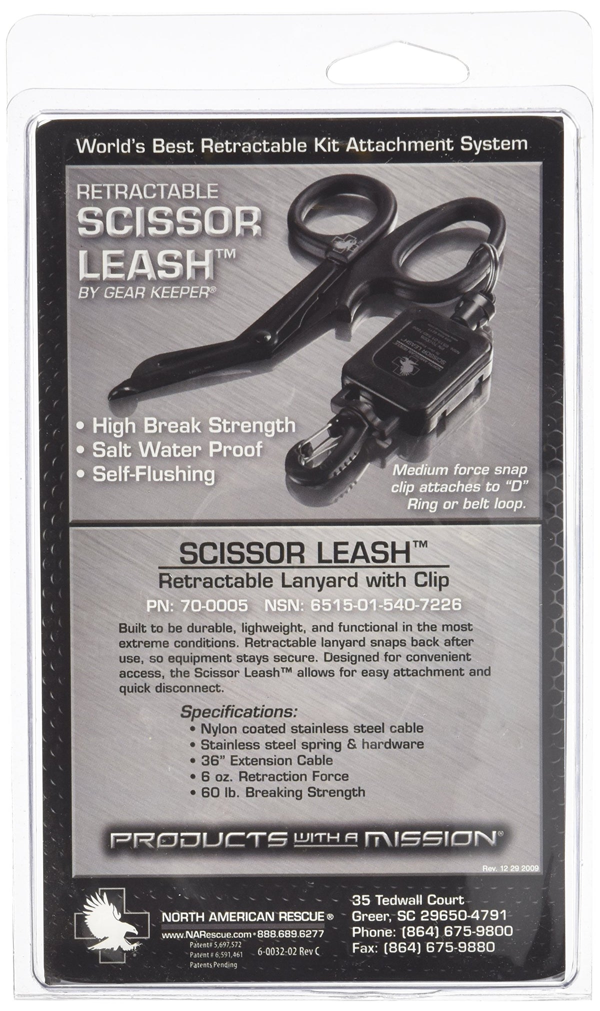 North American Rescue Retractable Scissor Leash With Clip (Black) Nar Lightweight Lanyard Leash For Medical Trauma Shears (70-0005)