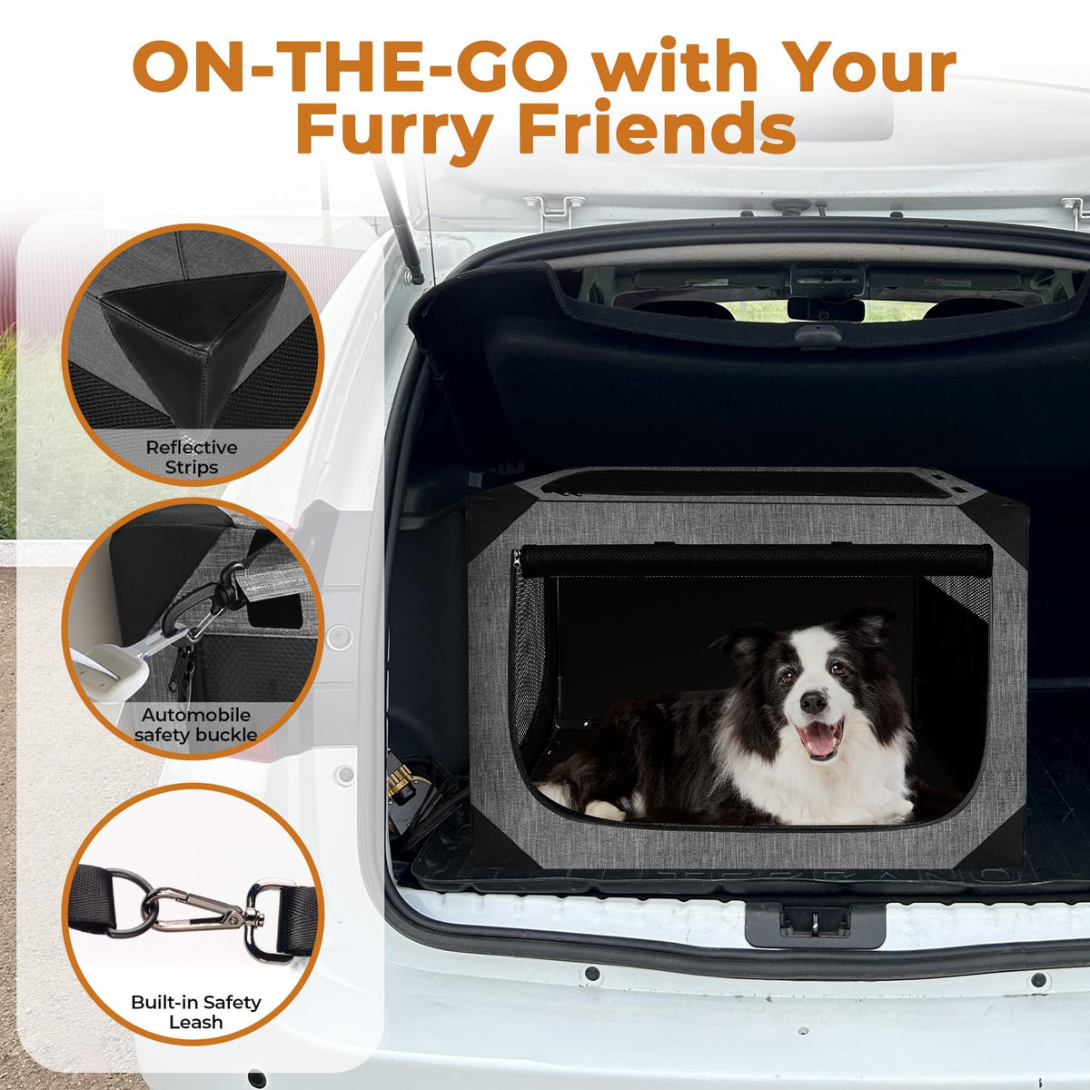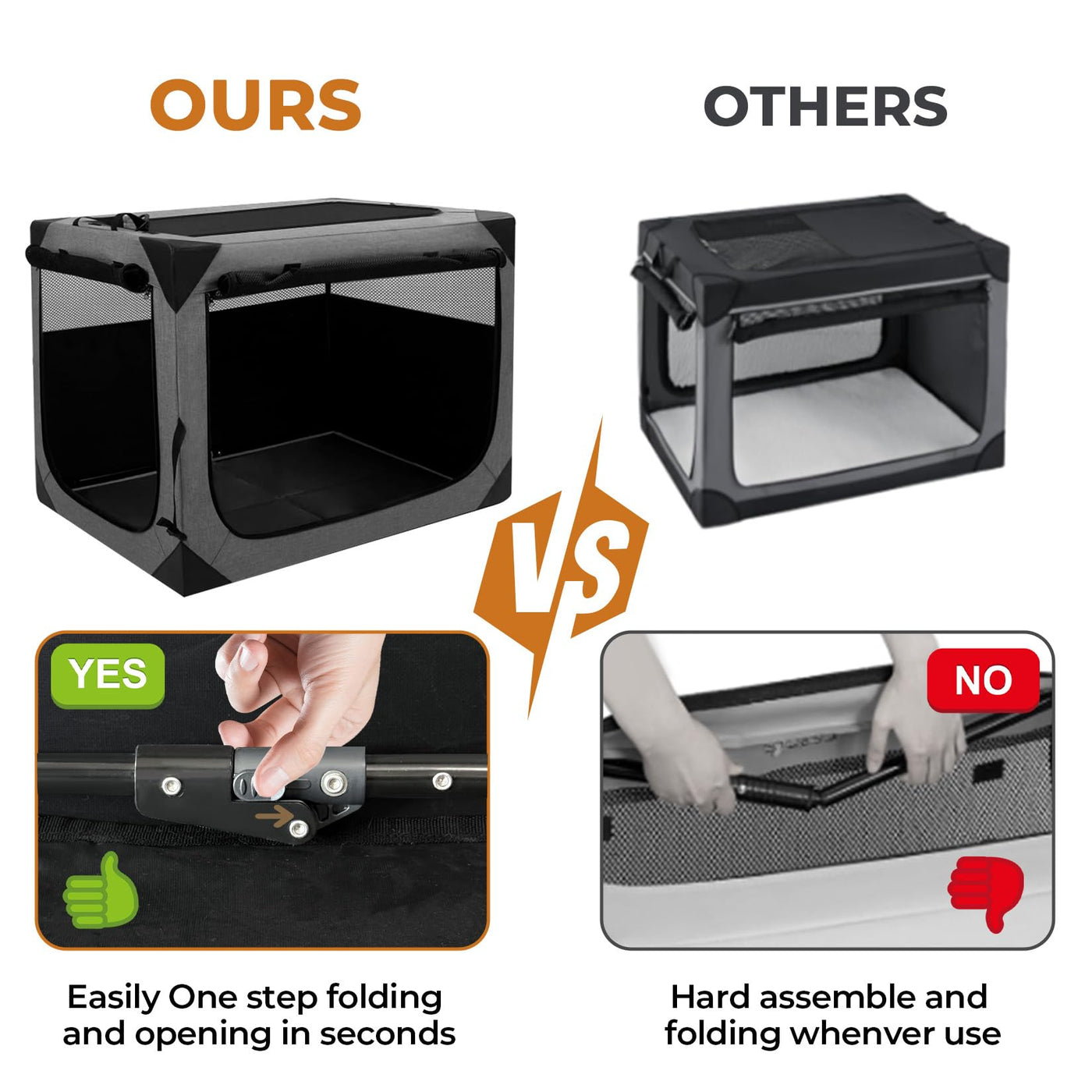 This medium dog crate is specifically designed to offer a comfortable and safe haven for your beloved canine companion. Constructed from durable 620D Oxford cloth, this soft dog crate is not only portable but also collapsible, ensuring convenience whether you are at home or traveling. The three-door design allows easy access for your dog while providing ample ventilation. Perfectly sized at 36 inch long, 25 inch wide, and 25 inch high, it accommodates medium-sized dogs effortlessly. Measures: 36 inch L x 25 inch W x 25 inch H. Ideal for both indoor and outdoor use, this travel dog crate ensures your pets comfort during trips without sacrificing style or functionality. Featuring dark gray fabric that complements any decor, the crate blends seamlessly into various environments. This portable dog crate serves as an essential accessory for dog lovers who appreciate practicality combined with elegance. Built with durability in mind, our product stands out among other dog kennels and crates available on the market. Providing safety and peace of mind, it becomes a reliable part of your daily life when caring for your furry friend. With its collapsible structure, this soft dog crate can be easily folded and stored away when not in use, making it an indispensable item for those always on the go. Embrace the ease and sophistication of our medium portable dog crate, where design meets necessity to cater to all dog enthusiasts.
