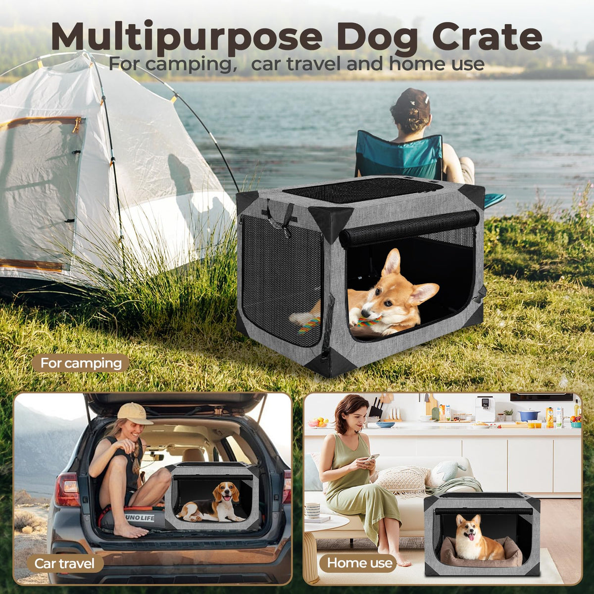 This Medium Dog Crate Is Specifically Designed To Offer A Comfortable And Safe Haven For Your Beloved Canine Companion. Constructed From Durable 620D Oxford Cloth, This Soft Dog Crate Is Not Only Portable But Also Collapsible, Ensuring Convenience Whether You Are At Home Or Traveling. The Three-Door Design Allows Easy Access For Your Dog While Providing Ample Ventilation. Perfectly Sized At 30 Inch Long, 21 Inch Wide, And 21 Inch High, It Accommodates Small-Sized Dogs Effortlessly.Measures: 30 Inch L X 21 Inch W X 21 Inch H. Ideal For Both Indoor And Outdoor Use, This Travel Dog Crate Ensures Your Pet'S Comfort During Trips Without Sacrificing Style Or Functionality. Featuring Dark Gray Fabric That Complements Any Decor, The Crate Blends Seamlessly Into Various Environments. This Portable Dog Crate Serves As An Essential Accessory For Dog Lovers Who Appreciate Practicality Combined With Elegance. Built With Durability In Mind, Our Product Stands Out Among Other Dog Kennels And Crates Available On The Market. Providing Safety And Peace Of Mind, It Becomes A Reliable Part Of Your Daily Life When Caring For Your Furry Friend. With Its Collapsible Structure, This Soft Dog Crate Can Be Easily Folded And Stored Away When Not In Use, Making It An Indispensable Item For Those Always On The Go. Embrace The Ease And Sophistication Of Our Medium Portable Dog Crate, Where Design Meets Necessity To Cater To All Dog Enthusiasts.