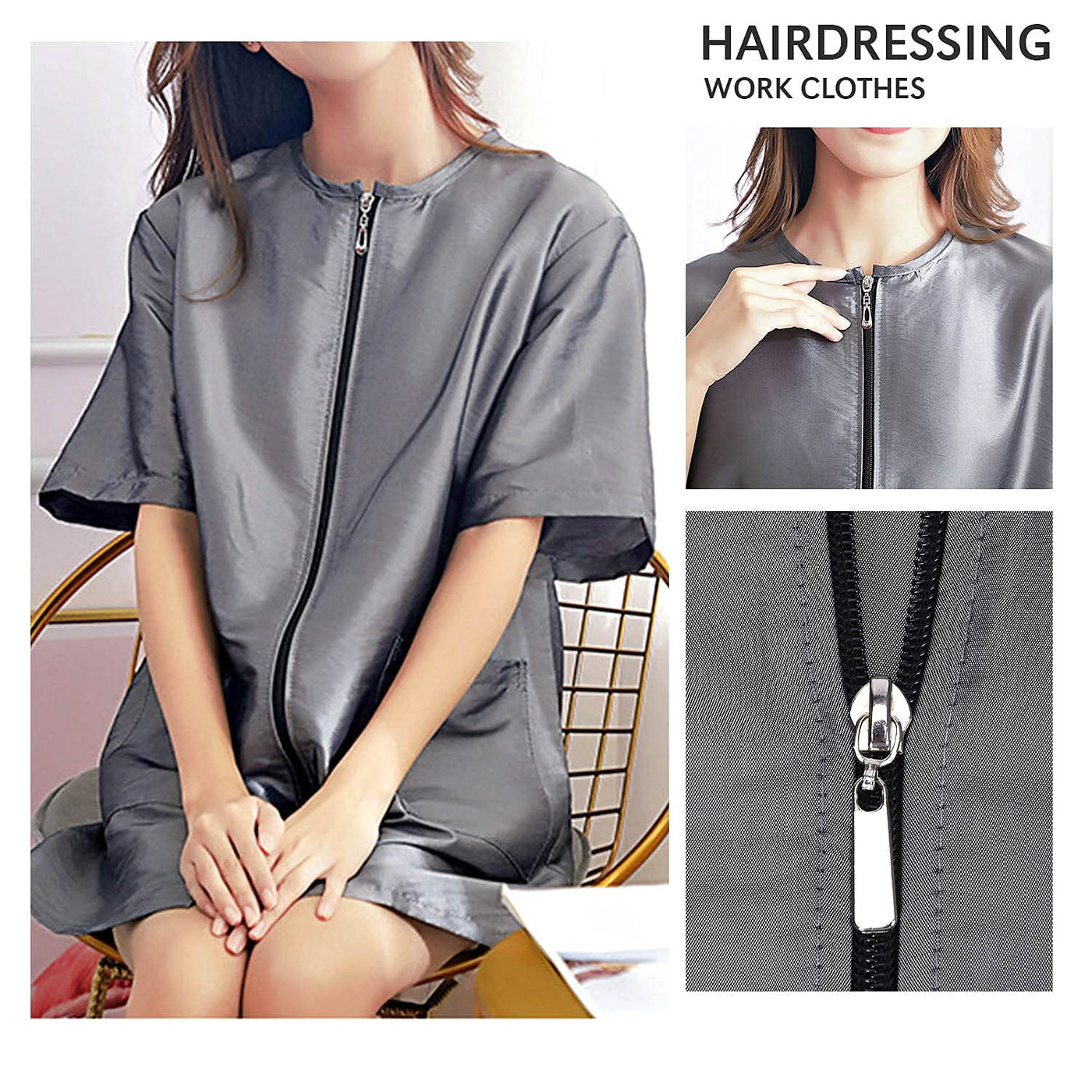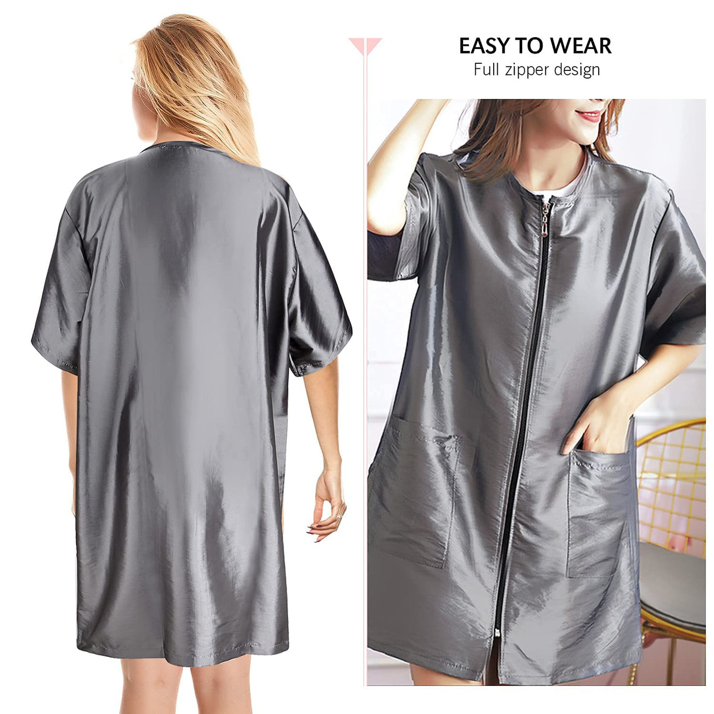 Noverlife Pet Grooming Workwear With Long Full Zipper, M Size, Lightweight Hair Grooming Smock Jacket, Anti-Static Pet Work Clothes, Hair Stylist Splash Proof Apron For Spa Salon Beauty Dog Groomers