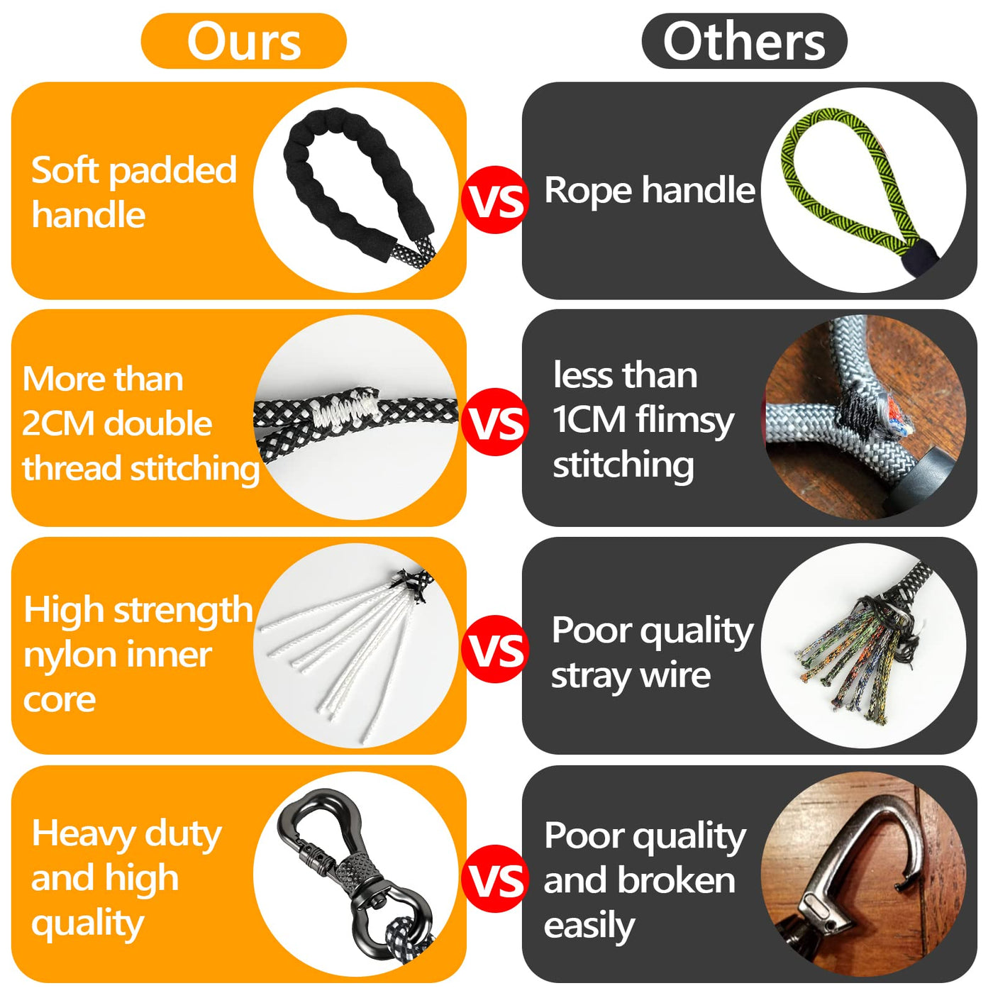 Unique Lockable Bone-shaped Hook: NTR dog Leash designed this hook with the bone shape dogs love and added locked latch to make sure that the clasp of the rope leash is secure and will not open unexpectedly and allows 360
