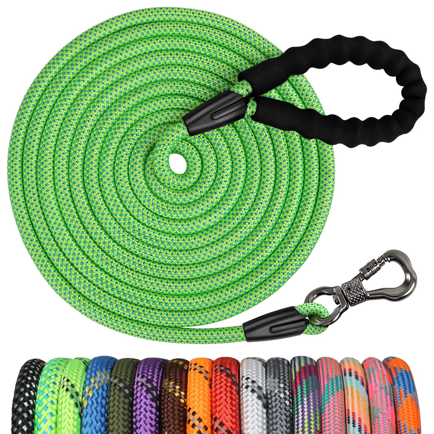 NTR 50FT Long Dog Leash Rope Dog Leash with Swivel Lockable Hook and Comfortable Padded Handle Dog Training Leash Lead for Walking Hunting Camping Backyard for Small Medium and Large Dogs