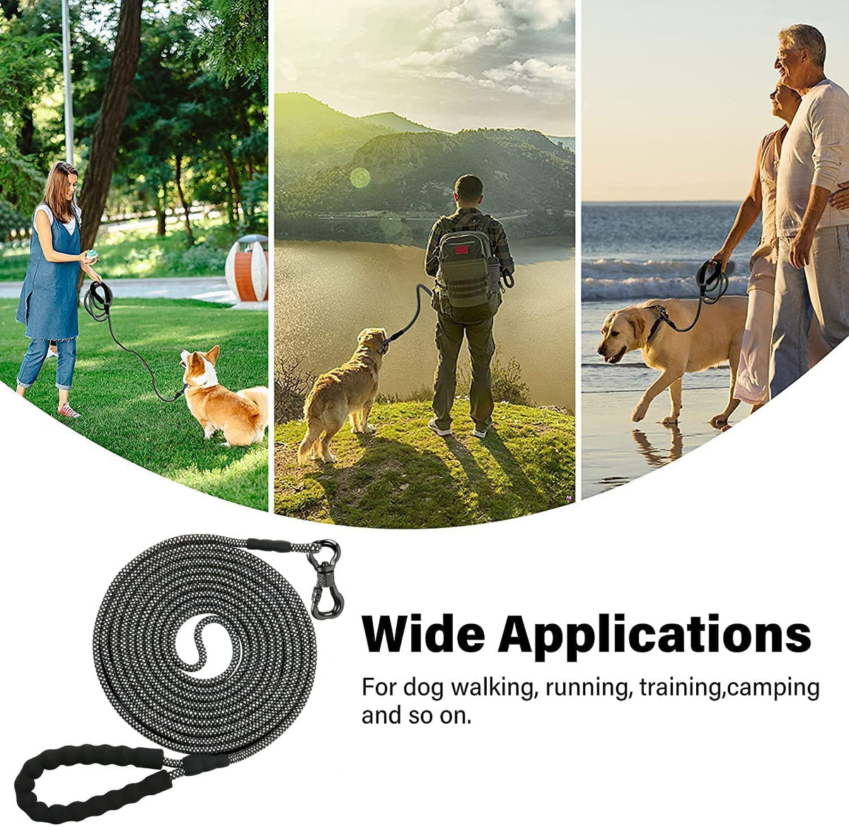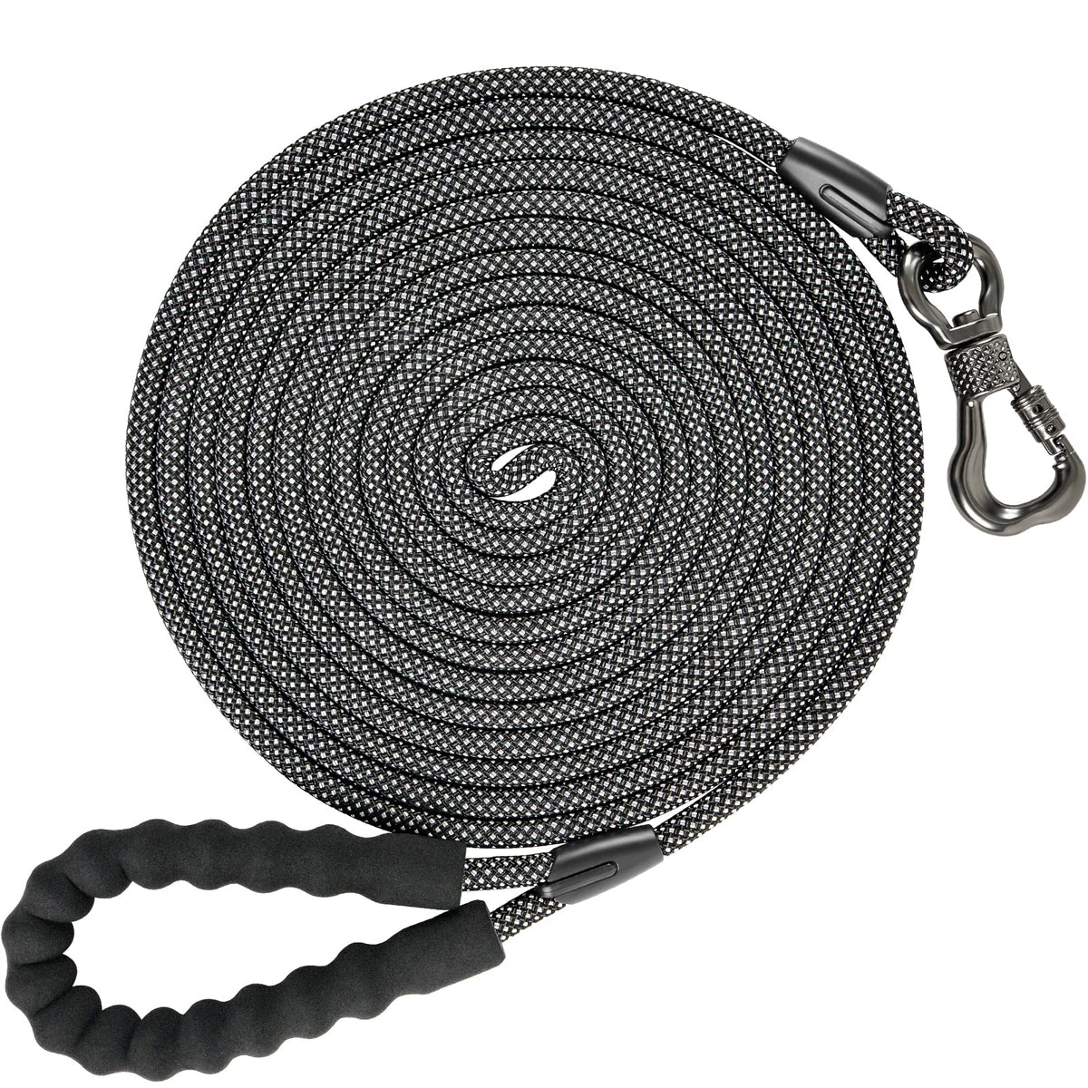NTR Heavy Duty Dog Leash Black 15FT Training Leash with Swivel Lockable Hook and Comfortable Padded Handle Dog Lead for Walking Hunting Camping Backyard for Small Medium and Large Dogs
