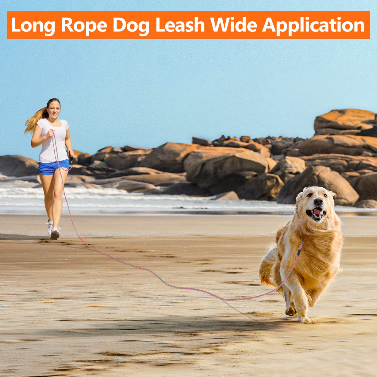 NTR Long Leash 15 FTDog Check Cord with Swivel Lockable Hook and Comfortable Padded Handle for Reflective Dog Leash for Small Medium and Large Dogs Walking Training Hiking Camping Playing