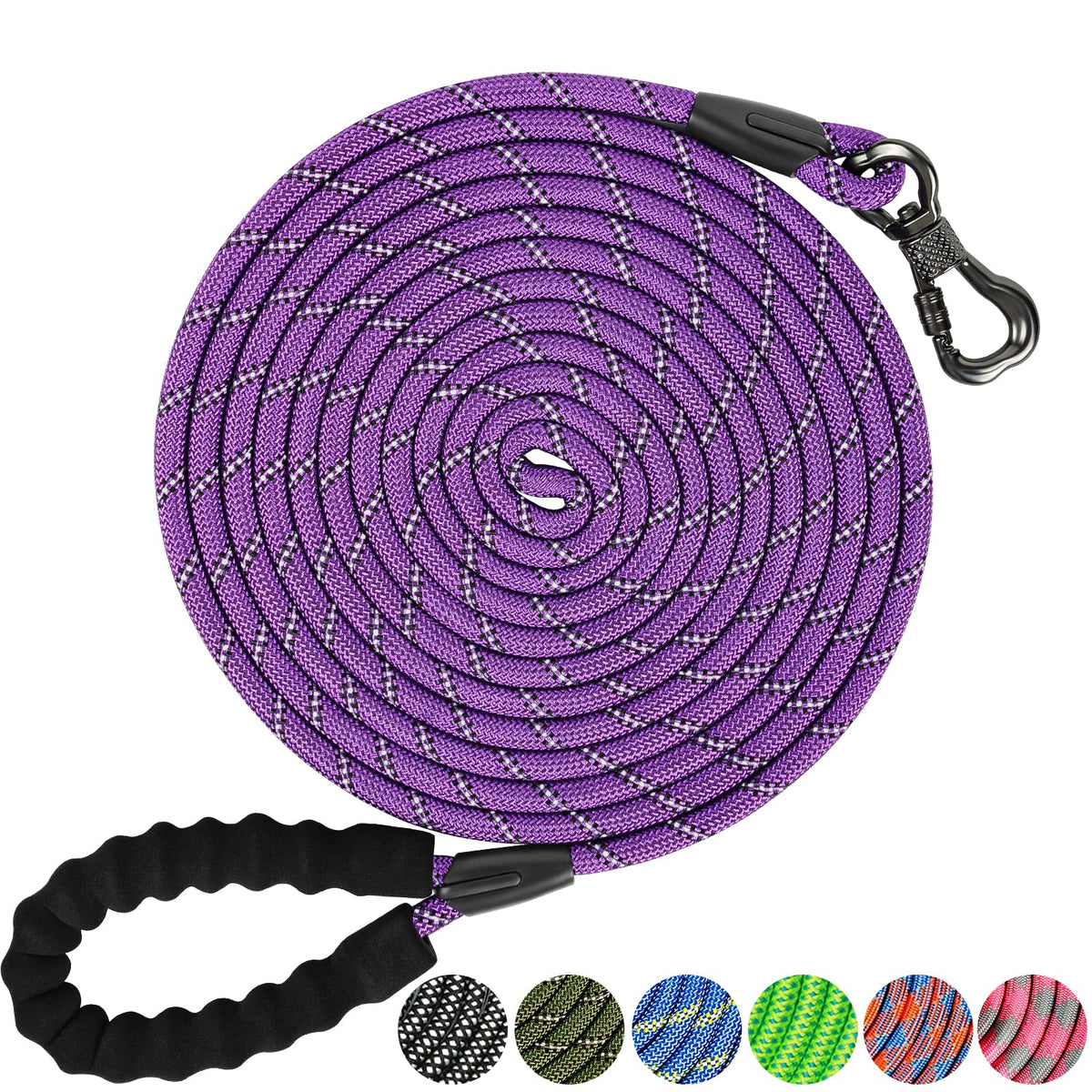 NTR Strong Dog Leash 15FT Reflective Purple Rope Dog Leash with Swivel Lockable Hook and Comfortable Padded Handle Cat Puppy Leash Lead for Small Medium Large Dogs Training Playing Camping or Backyard