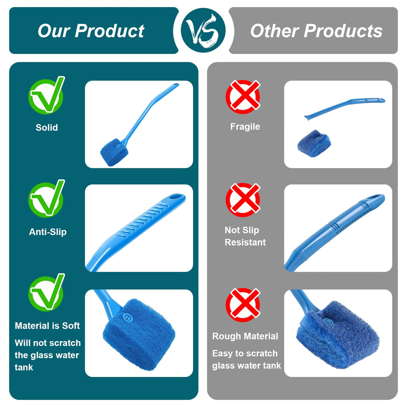 Efficient cleaning: Our fish tank cleaning brush is made from a combination of super strong soft and hard materials which can easily remove dirt and limescale from the inside surface and bottom of your fish tank greatly improving cleaning efficiency and keeping your tank clean and healthy at all times.