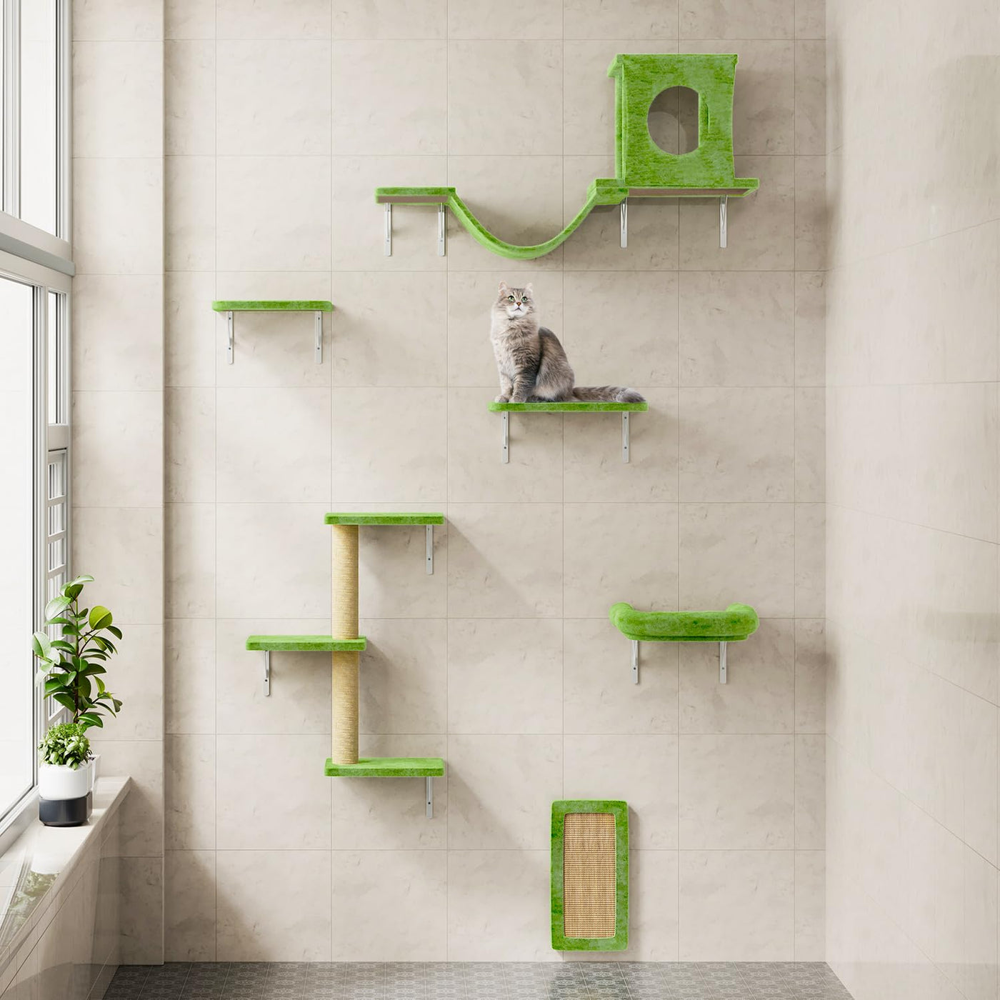 Does Your Cat Often Have A Lot Of Energy To Release? If You'Ve Always Been Plagued By Your Kitten'S Active Behavior And Strongly Desire The Perfect Wall-Mounted Cat Furniture To Safely Expend His/Her Energy, Then The Nunu Lab Wall Cat Climbing Set May Be The Ideal Choice For You. Diy Any Of These 6 Pieces Together To Create An Indoor Wall-Mounted Playground For Your Cat. Jump From One Shelf To Another Perch, Rest On The Shelf Or Step Along The Cat Tree, And Finally The Apartment House Is There For Your Pet To Rest Comfortably Or Take A Nap.
