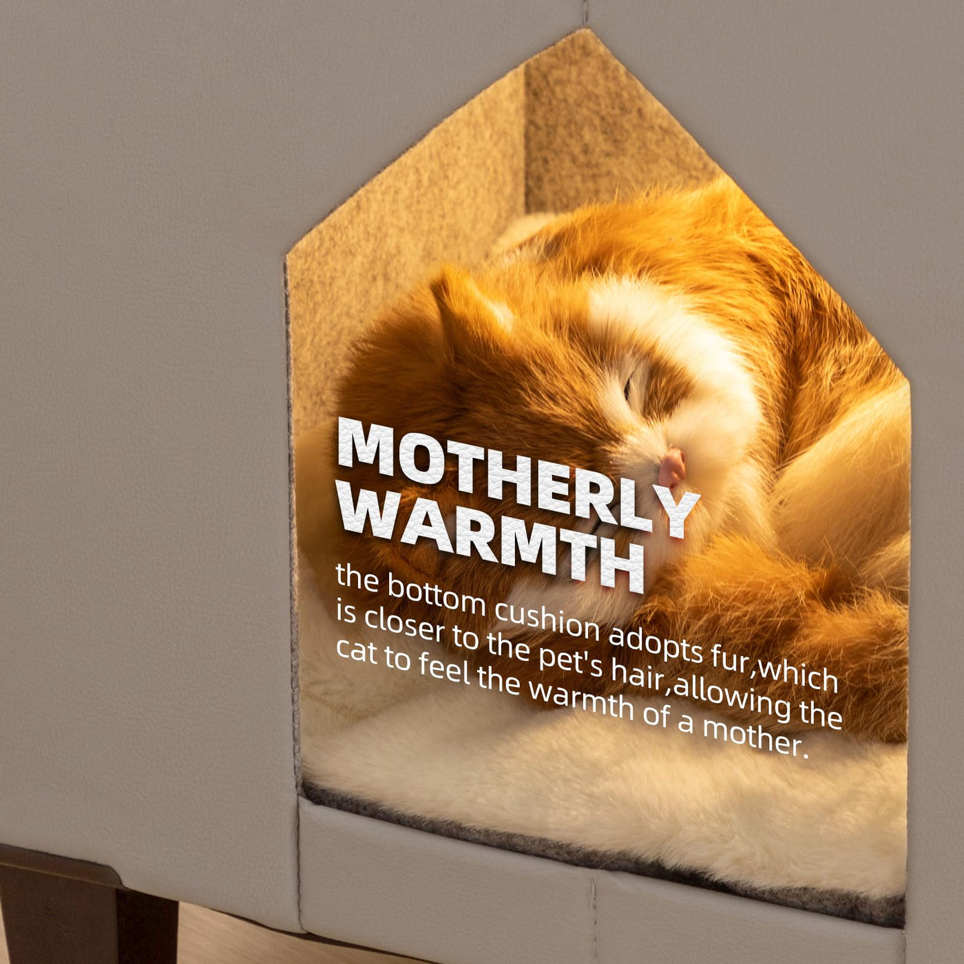 Unique & Cozy: This Cat Scratch House For Indoor Cats,It Has Comfortable Fur Cushion For Warmth,Large Area Scratch Board Provide Entertainment And Mental Stimulation,Keeping Your Cat Engaged And Happy For Hours,Unique Design Is Great Suitable For Decorating The Living Room And Your Bedroom,17.5(L)*13(W)*20(H) Inches. Premium Materials: Nuromy Cat Houses & Condos Features Premium Quality Waterproof Cat Scratch Leather On Its Surface,Allowing Cats To Repeatedly Scratch Pad,The Cushion Of Cat Scratch Houseis Made Of High Insulation Fur,Which Can Effectively Protect The Cat'S Body Temperature,All Materials Differ From Other Brands. Sturdy Structure: Made From Durable And 100% Pet-Friendly Materials Mdf Structure,While Maintaining The Stability Of The Main Structure,Optimized The Weight Of Traditional Side Tables,Allowing Users To Easily Move It,Added Wooden Feet To The Cat Cave Bed,Which Can Effectively Prevent Floor Contact With The Bottom Of The Cat Condo. Easy To Assemble & Store: This Cat Furniture Adopts A Foldable Integrated Design,Which Takes Only Three Minutes To Assemble And No Tools Are Needed,It Can Be Folded Up When Not In Use, It'S Very Convenient To Move And Use.Nuromy Cat Cave Bed Made In China,But Different Most Other Brand. About Nuromy: Nuromy Brand Focuses On Research In The Field Of Pets, Hoping That This Cat Hideaway Can Bring Your Cat Closer To You, Accompany You By The Bedside Or By Your Sofa Or In Your Office.Nuromy Also Hope That This Unique Hideaway Cave Can Make Your Living Room Or Bedroom More Noble,It'S Also Good Ideas For Feral Cat House.