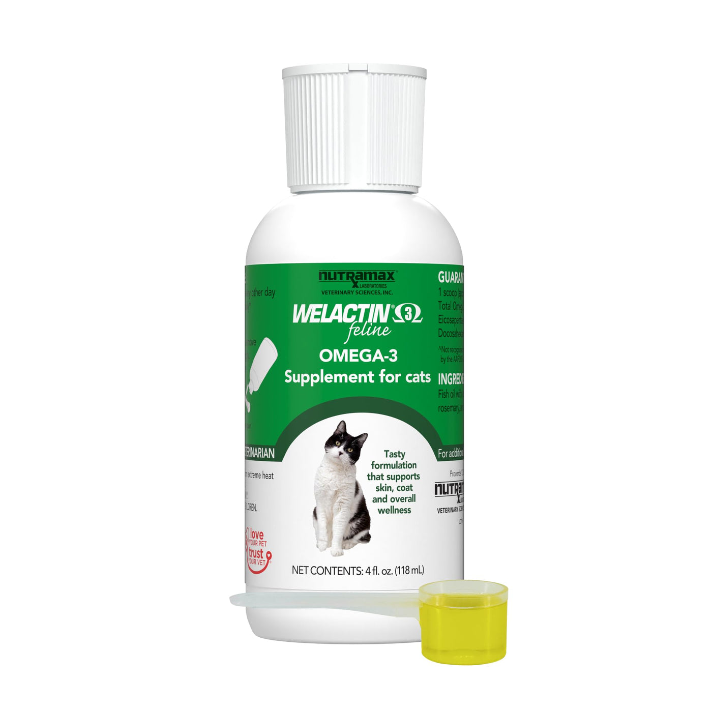 Welactin is a rich source of omega-3 fatty acids derived from wild-caught, cold-water fish. Welactin is formulated to deliver substantial levels of EPA (eicosapentaenoic acid) and DHA (docosahexaenoic acid) to cats. DHA and EPA have been identified as healthy fatty acids. Welactin Omega-3 Supplements are brought to you by Nutramax Laboratories Veterinary Sciences, #1 veterinarian recommended supplement company. *Source: Survey conducted among small animal veterinarians who recommended animal supplements.