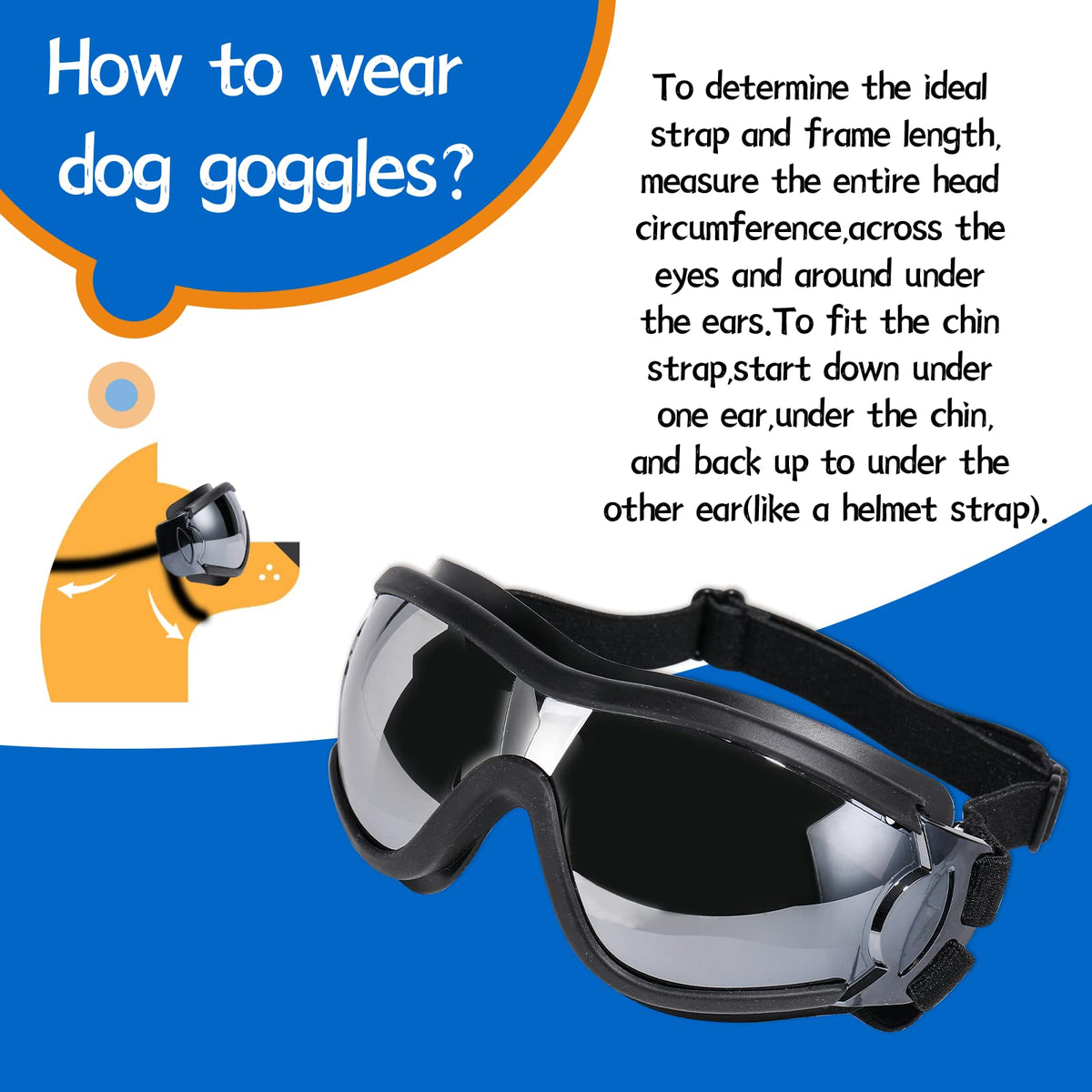 NVTED Dog Sunglasses Dog goggles UV Protection Wind Protection Dust Protection Fog Protection Pet glasses Eye Wear Protection with Adjustable Strap for Medium or Large Dog