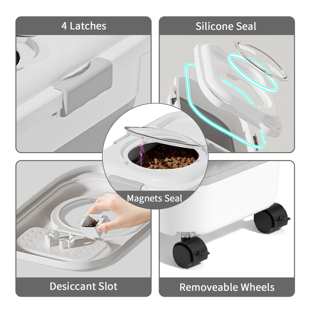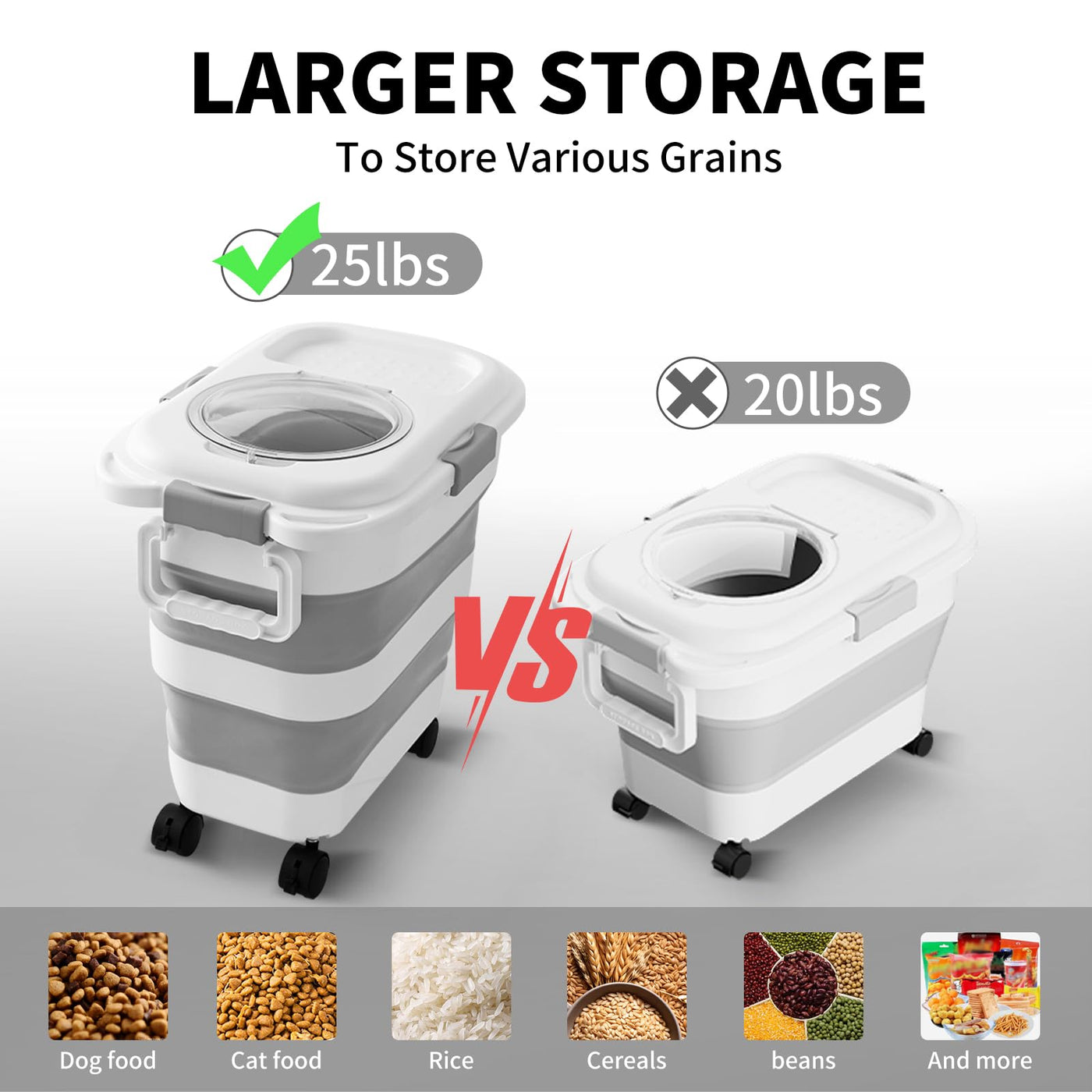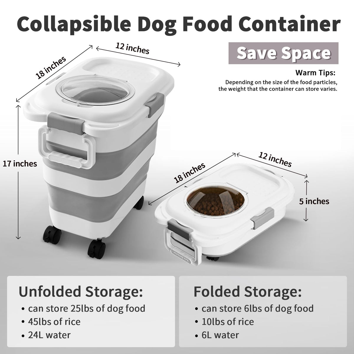 NXIZOLI 25 Lbs Dog Food Storage Container, Collapsible Dog Food Container with Scoop for Pet/Dog/Cat/Bird Food,Keep Dry Food Fresh,Easy to Move (White)