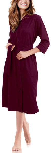 Ny Threads Luxurious Women Knit Robe Kimono Cotton Blend Bathrobe Ladies Loungewear Sleepwear (Medium, Purple Red)