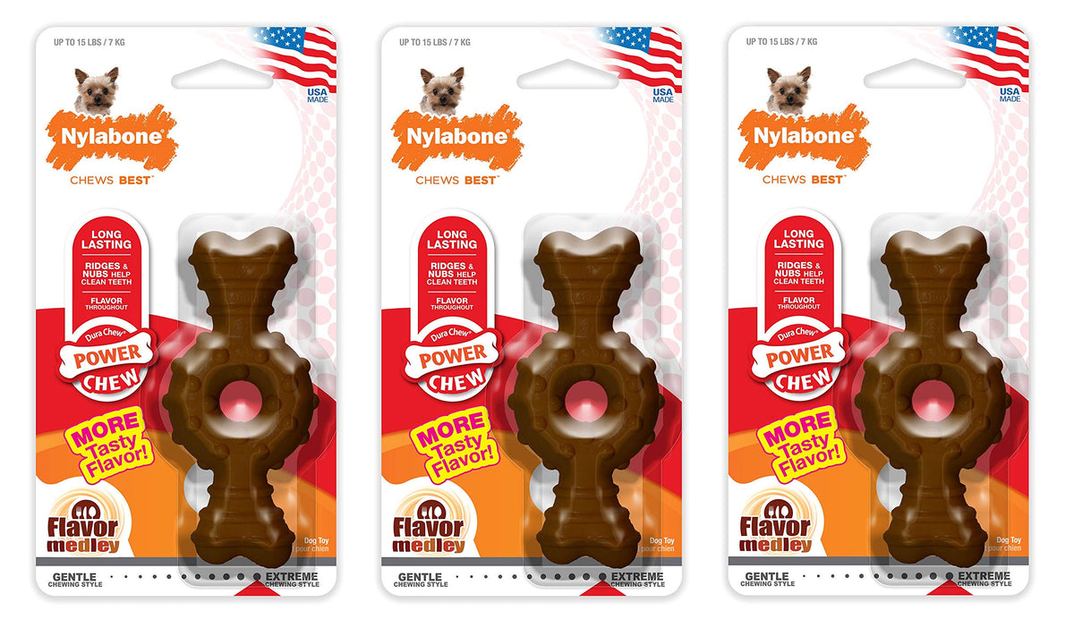 Nylabone 3 Pack Of Power Chew Textured Ring Bones, Petite, Flavor Medley, For Dogs Up To 15 Pounds, Made In The Usa