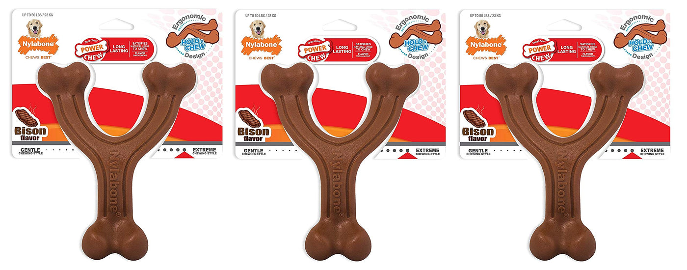 Nylabone 3 Pack Of Power Chew Wishbone Chew Dog Toys, Giant, Bison Flavor