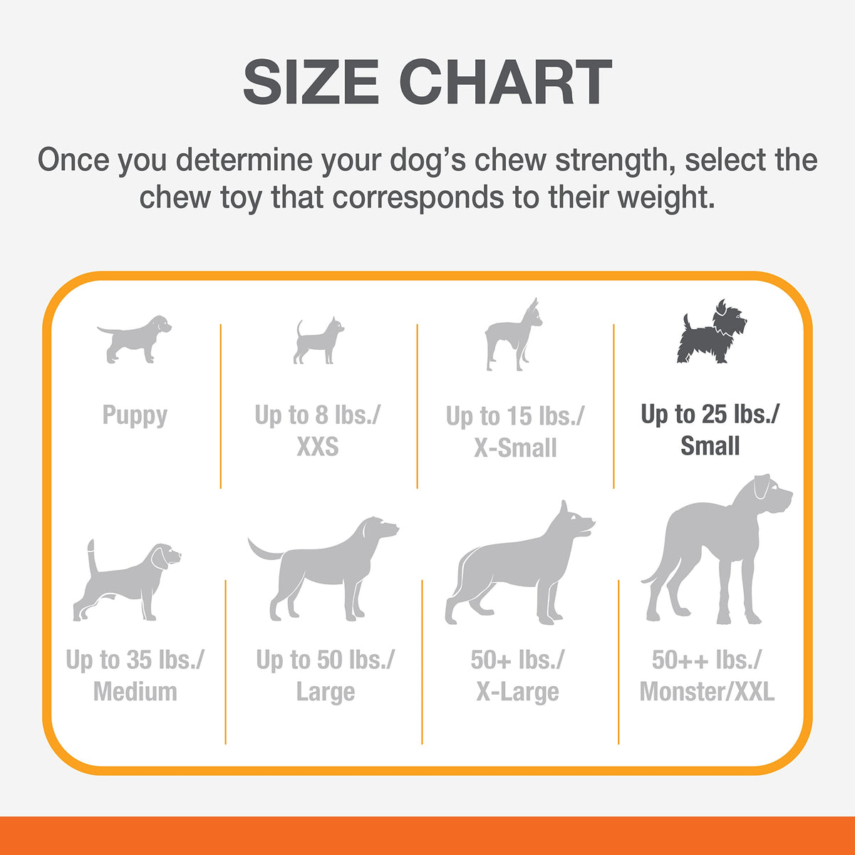 Q: What size dogs are the Nylabone chew toys intended for?A: These chew toys are intended for small dogs weighing up to 25 pounds, ensuring that they are the right fit for your furry friend.