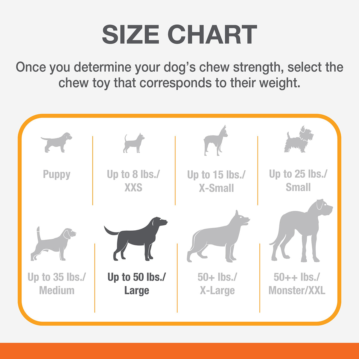 Q: What size of dog is the Nylabone Basted Blast chew toy intended for?A: This chew toy is intended for large dogs, specifically those weighing up to 50 pounds. The large/giant size makes it perfect for bigger breeds.
