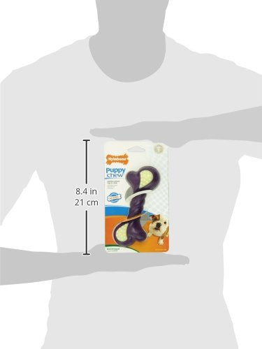 Q: What age is the Nylabone Double Action Bone Puppy Chew Toy suitable for?A: The Nylabone Double Action Bone Puppy Chew Toy is designed specifically for teething puppies, making it ideal for puppies who are still in the teething stage and have not yet developed any permanent teeth.