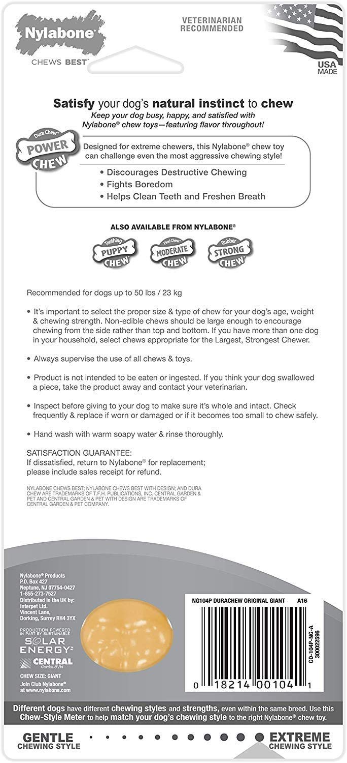 Satisfy every pup's natural chewing instinct with a super-tasty Nylabone Durable Original Bone Chew Dog Toy. This chew toy has a nubby and ridged design that provides Buddy with hours of chewtime fun while stimulating his gums and cleaning his teeth too. The Original Bone Chew contains real meat juices that last for the life of the bone and keep your pooch coming back for more.