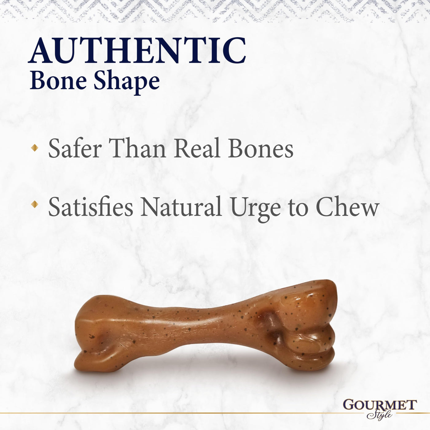 THE GOURMET STYLE STORYInspired by that distinct this is the life feeling of satisfaction, Nylabones Gourmet Style chew toys are made to wow flavor-obsessed dogs who crave a new type of chewing experience. Applying decades of expertise, this latest formula is uniquely crafted with enticing flavor bits you can see-leaving even the most particular pups with a sense of chewing gratification! Satisfy your furry friends natural chewing instincts with these veterinarian-recommended chew toys for dogs that are proudly made in the USA.2 FEMUR BONES WITH MORE FLAVOR YOU CAN SEEFeaturing 2 femur-shaped chew toys, this twin pack offers dogs a safe and delicious way to enjoy the authentic bone shape they love. Both long-lasting chew toys are made of durable material that keeps dogs occupied and helps clean their teeth as they chew. Satisfy your furry friends natural chewing instincts with these veterinarian-recommended dog chew toys that are proudly made in the USA.NYLABONE CHEWS BESTWhat your dog chews matters! With destructive behavior among the leading reasons dogs are returned to shelters, we know healthy habits can make a life-changing difference. For 70 years, our family-founded brand continues to safely satisfy dogs chewing instincts and help them stay in loving forever homes!GUARANTEED YOUR DOG WILL LOVE ITBefore we introduce new dog products to furry friends and pet parents everywhere, we make sure our very own dogs love them first! If youre not happy with your Nylabone dog toy for any reason, simply return it to us with the sales receipt for your money back.