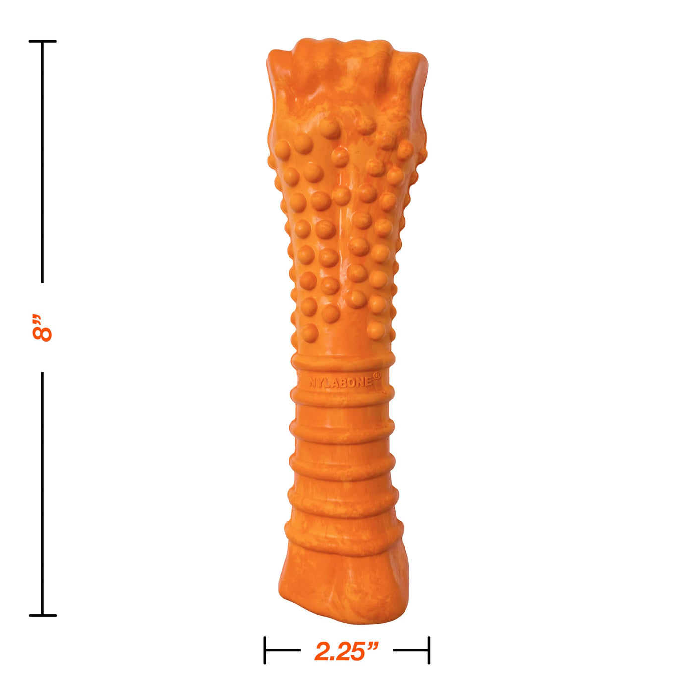 ABOUT STRONG CHEW TOYSOur Strong Chew toys come in tougher materials that are perfect for stronger chewers! Even dogs with less intense chewing styles can develop destructive habits, and this variety of rubber dog toys for aggressive chewers provides them a healthy way to satisfy their natural urge to chew and help clean teeth. Keep your best friend happy and busy with these tough dog toys!GET THE PAW-TY STARTED WITH TOUGH DOG TOYSThis textured dog toy is ready for some fun! Made from natural rubber in a limited-edition orange color to celebrate Nylabones 70th birthday, this durable chew toy for big dogs stands up to strong chewer large breeds. Savory bacon & cheese flavor gets the party going while the ridges and nubs help clean teeth as dogs chew.NYLABONE CHEWS BESTWhat your dog chews matters! With destructive behavior among the leading reasons dogs are returned to shelters, we know healthy habits can make a life-changing difference. For 70 years, our family-founded brand continues to safely satisfy dogs chewing instincts and help them stay in loving forever homes!GUARANTEED YOUR DOG WILL LOVE ITBefore we introduce new dog products to furry friends and pet parents everywhere, we make sure our very own dogs love them first! If youre not happy with your Nylabone chew toy for any reason, simply return it to us with the sales receipt for your money back. Or, reach out to our Consumer Care team so we can help make it right (and talk about how much we also love our dogs).