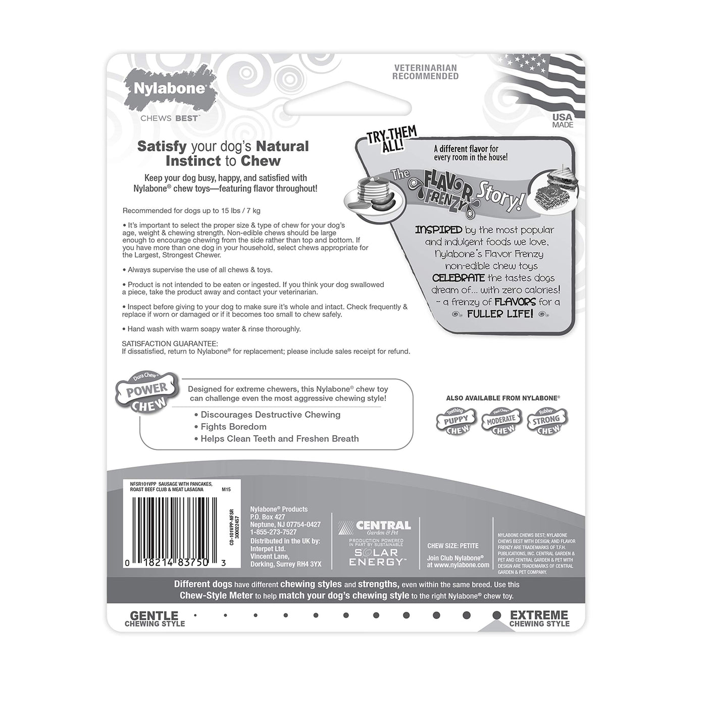 Nylabone Original Bone Power Chew Toy For Dogs, Durable Dog Toys For Aggressive Chewers, Flavor Frenzy Pancakes & Sausage, Roast Beef, & Lasagna, X-Small - Up To 15 Lbs, 3 Pack