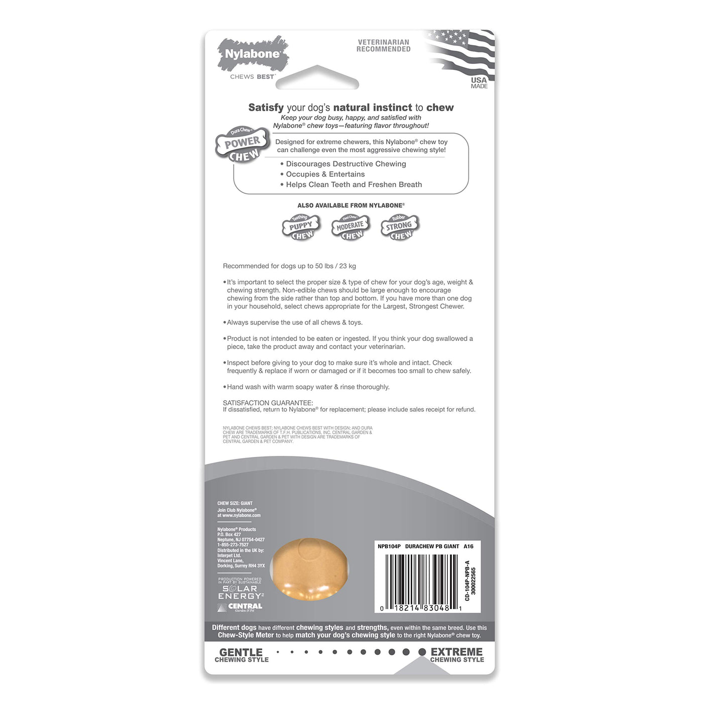 Nylabone Power Chew Classic Bone Chew Toy For Dogs, Durable Dog Toys For Aggressive Chewers, Peanut Butter Flavor, Large/Giant - Up To 50 Lbs. (1 Count)