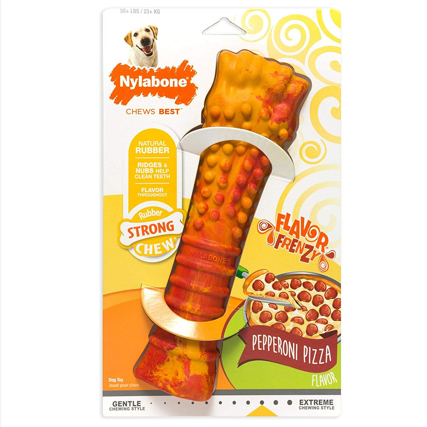 Nylabone Strong Chew Flavor Frenzy Souper Bone Chew Toy For Dogs, Indestructible Chew Toys For Aggressive Chewers, Pepperoni Pizza Flavor, X-Large/Souper - 50+ Lbs. (1 Count)
