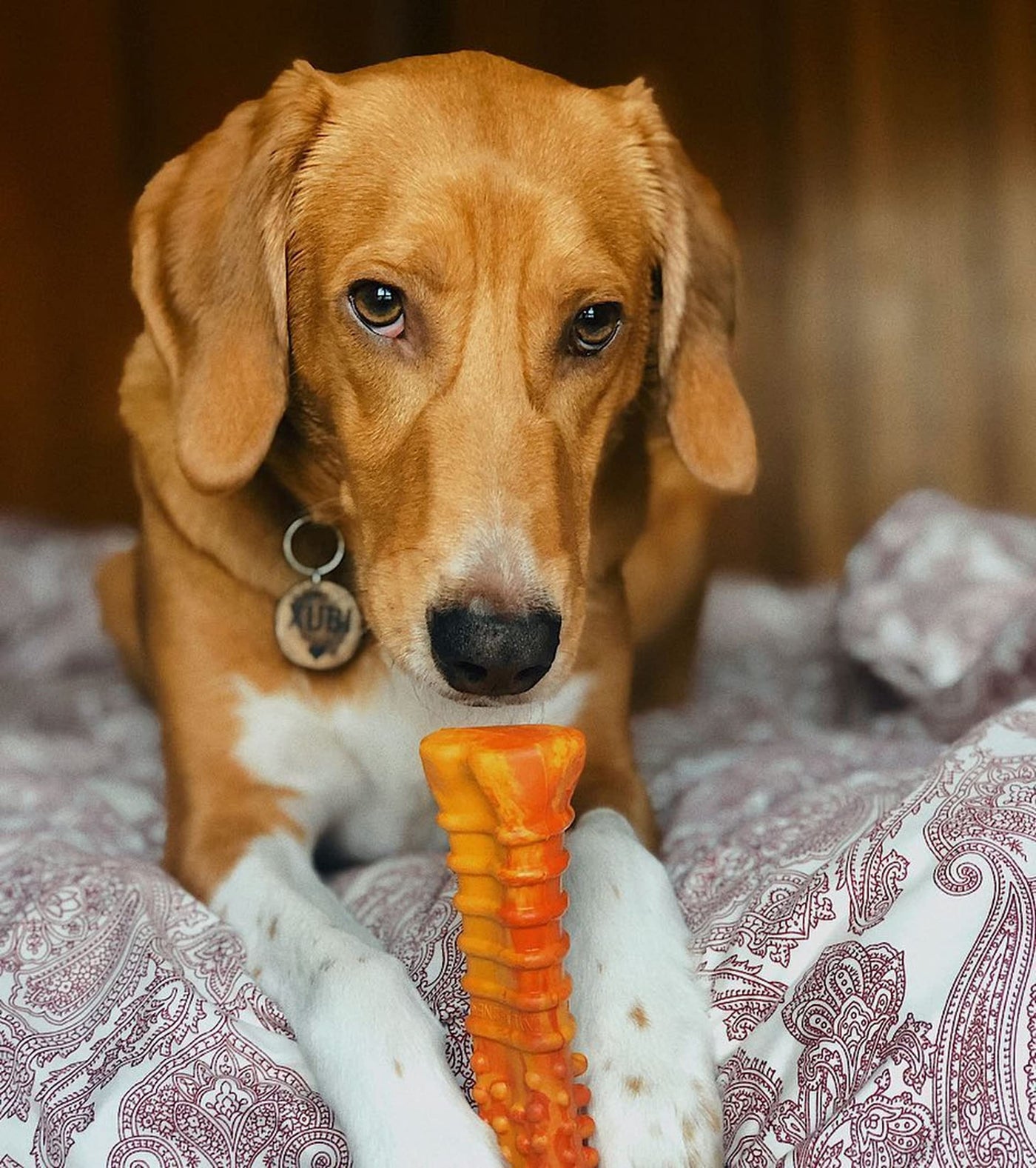 Bursts of fun flavor with zero calories are what our Nylabone Flavor Frenzy dog chew toys are all about! These natural rubber dog chew toys are perfect for strong chewers who want more flavor and decadence in their chewing sessions. This delicious flavored dog chew toy is a perfectly yummy pastime for your pup. Dog chew toy made in the USA!What your dog chews matters! With destructive behavior among the leading reasons dogs are returned to shelters, we know healthy habits can make a life-changing difference. For 70 years, our family-founded brand continues to safely satisfy dogs’ chewing instincts and help them stay in loving forever homes!